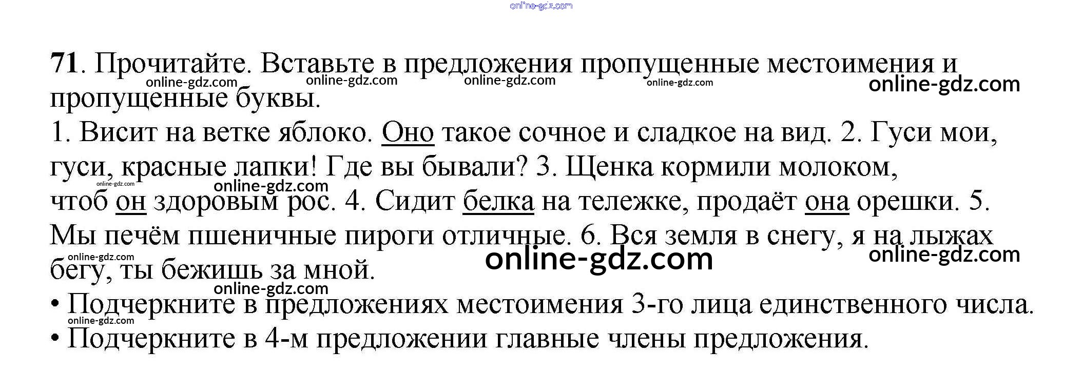Готовые домашние задания по Русскому языку за 4 класс Рабочая тетрадь Канакина Школа России 2013 - Часть 2. Задания 71