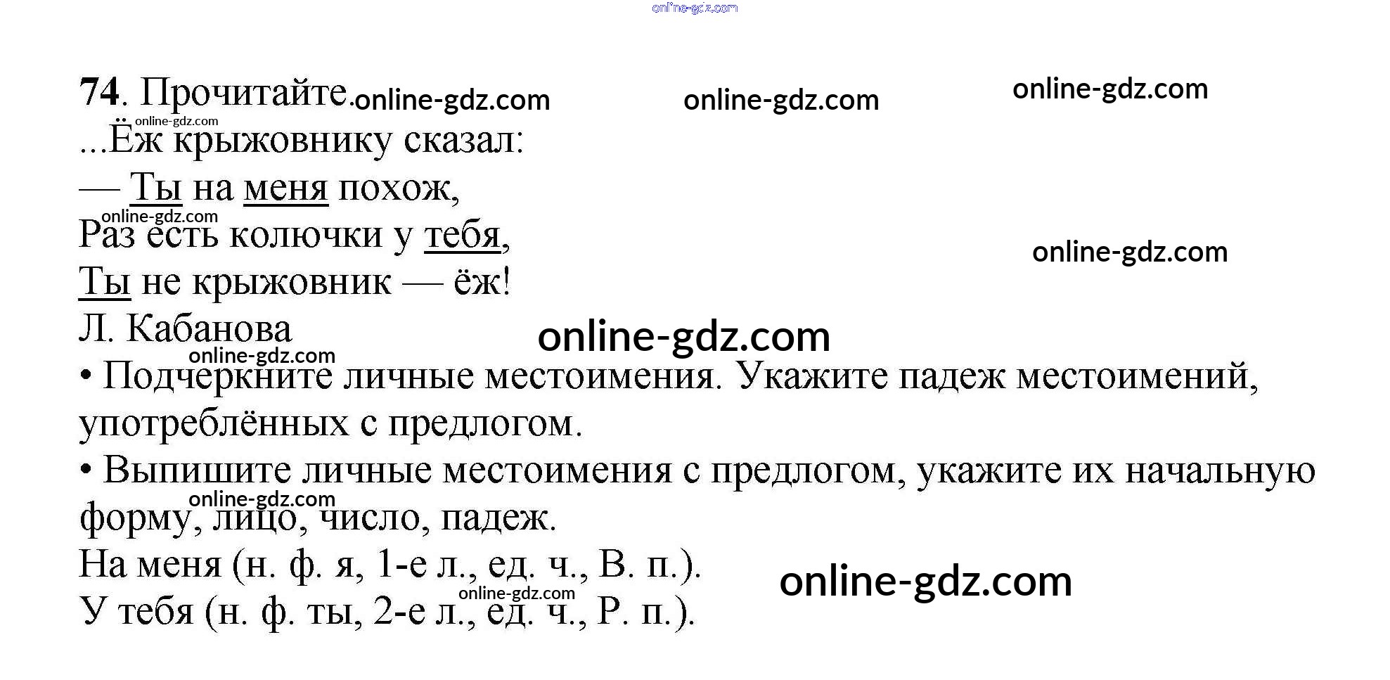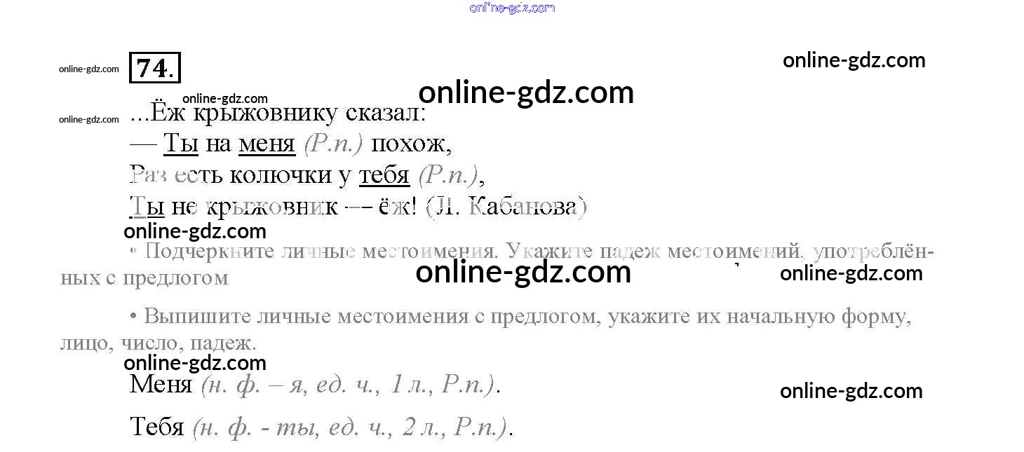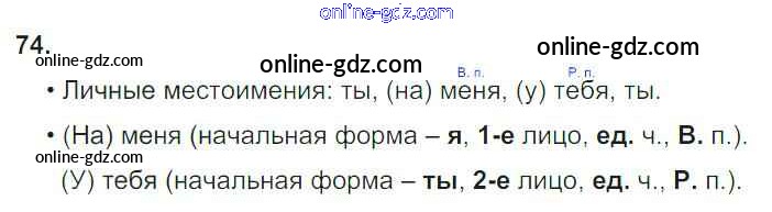 Готовые домашние задания по Русскому языку за 4 класс Рабочая тетрадь Канакина Школа России 2013 - Часть 2. Задания 74