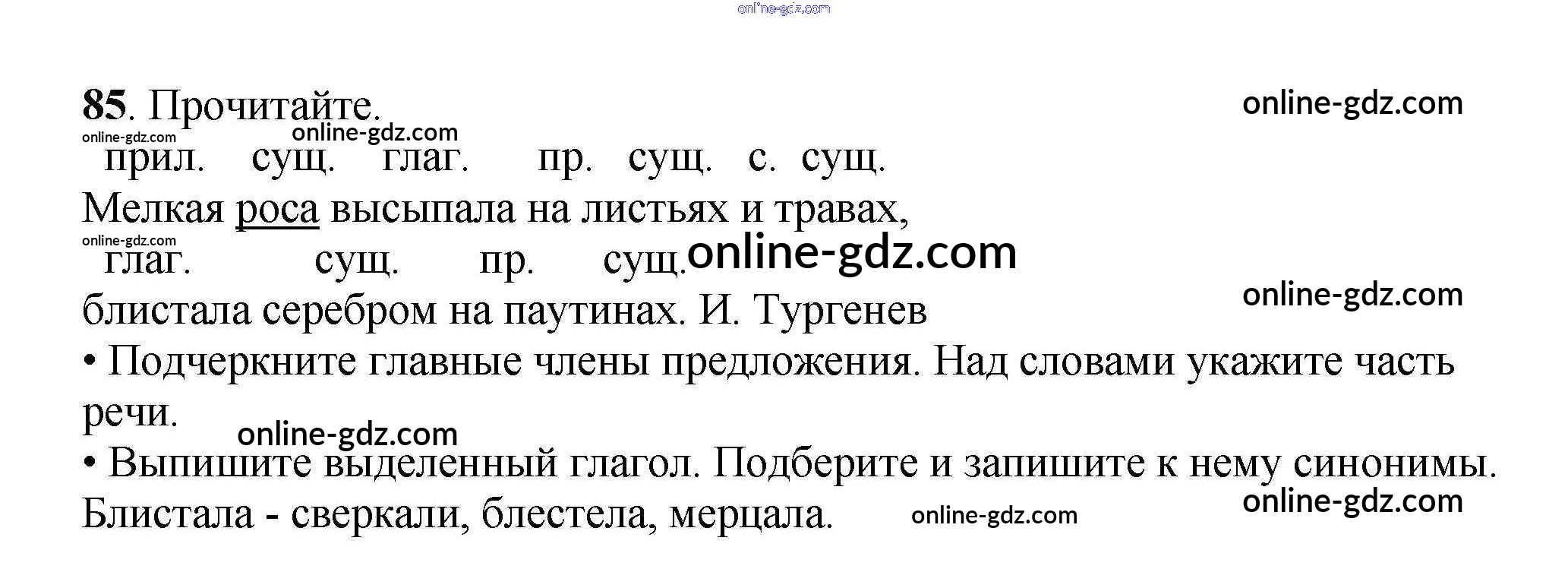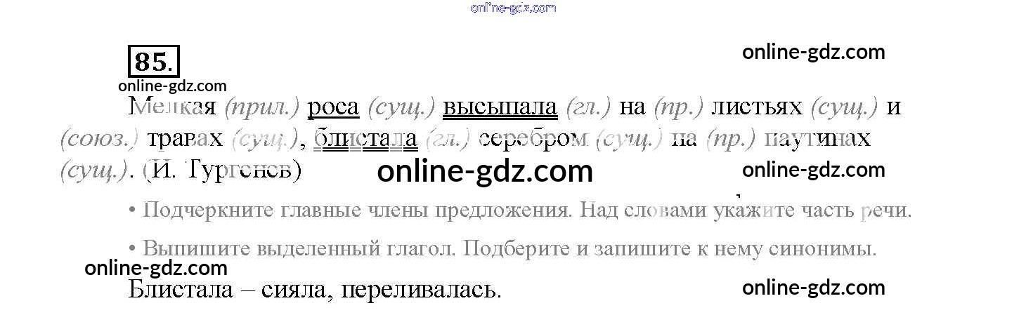 Готовые домашние задания по Русскому языку за 4 класс Рабочая тетрадь Канакина Школа России 2013 - Часть 2. Задания 85