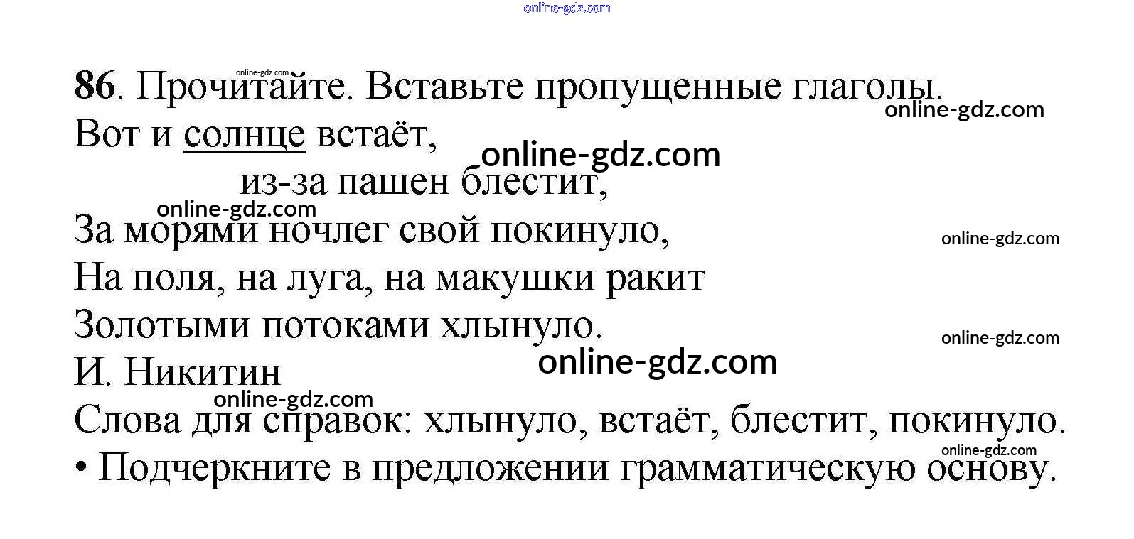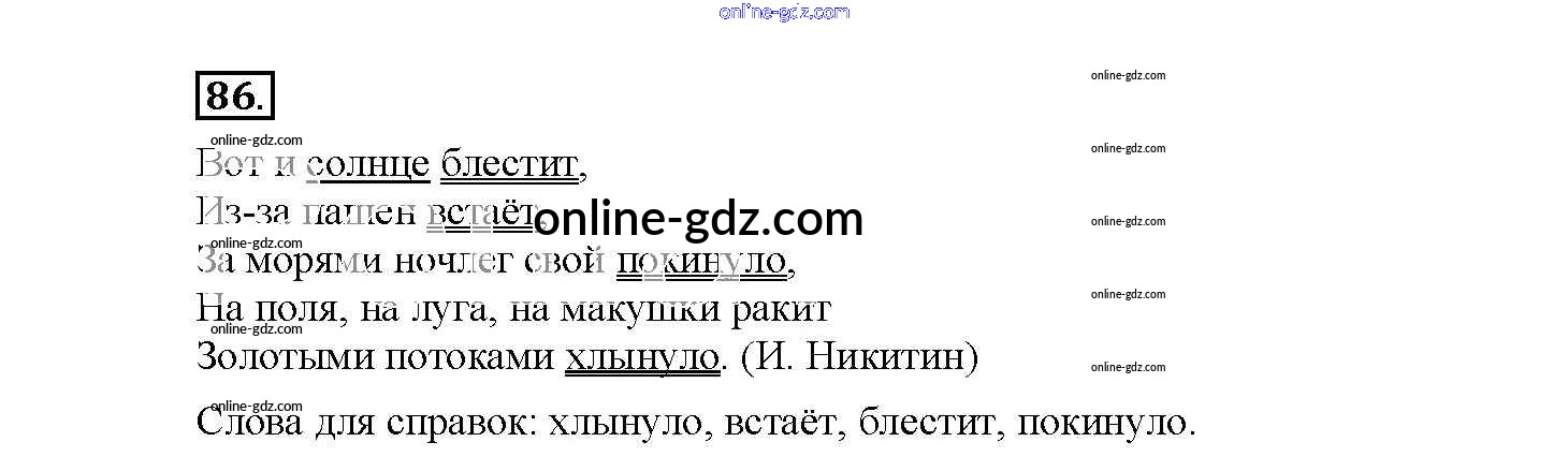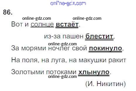 Готовые домашние задания по Русскому языку за 4 класс Рабочая тетрадь Канакина Школа России 2013 - Часть 2. Задания 86