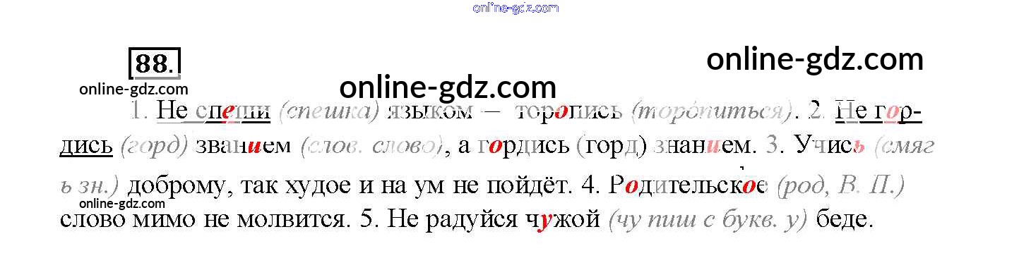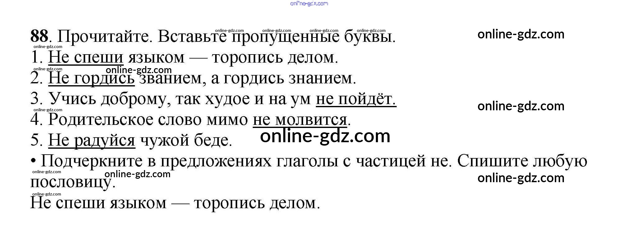 Готовые домашние задания по Русскому языку за 4 класс Рабочая тетрадь Канакина Школа России 2013 - Часть 2. Задания 88