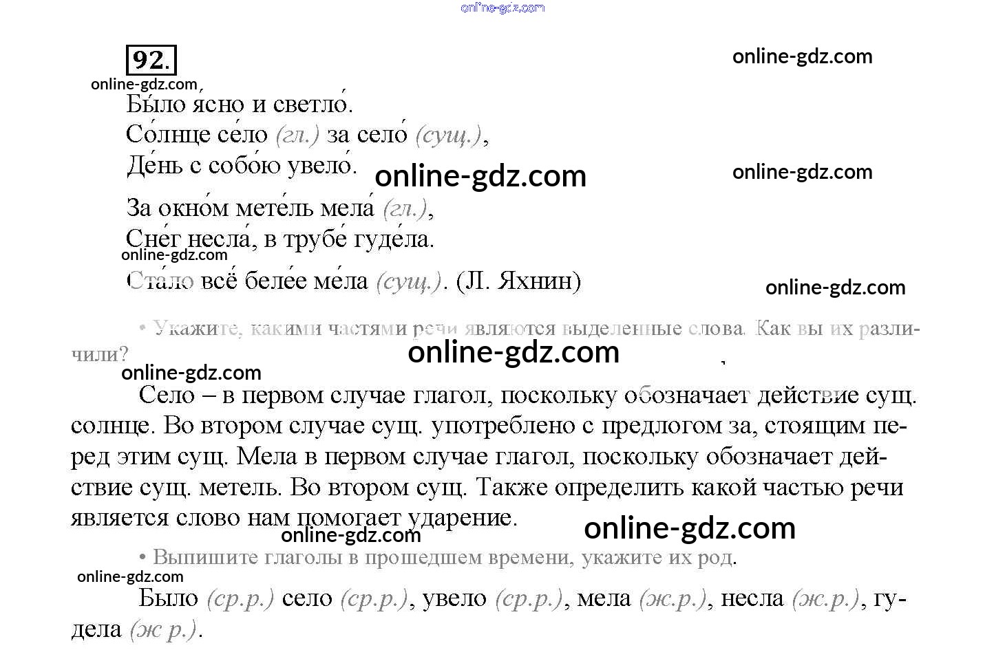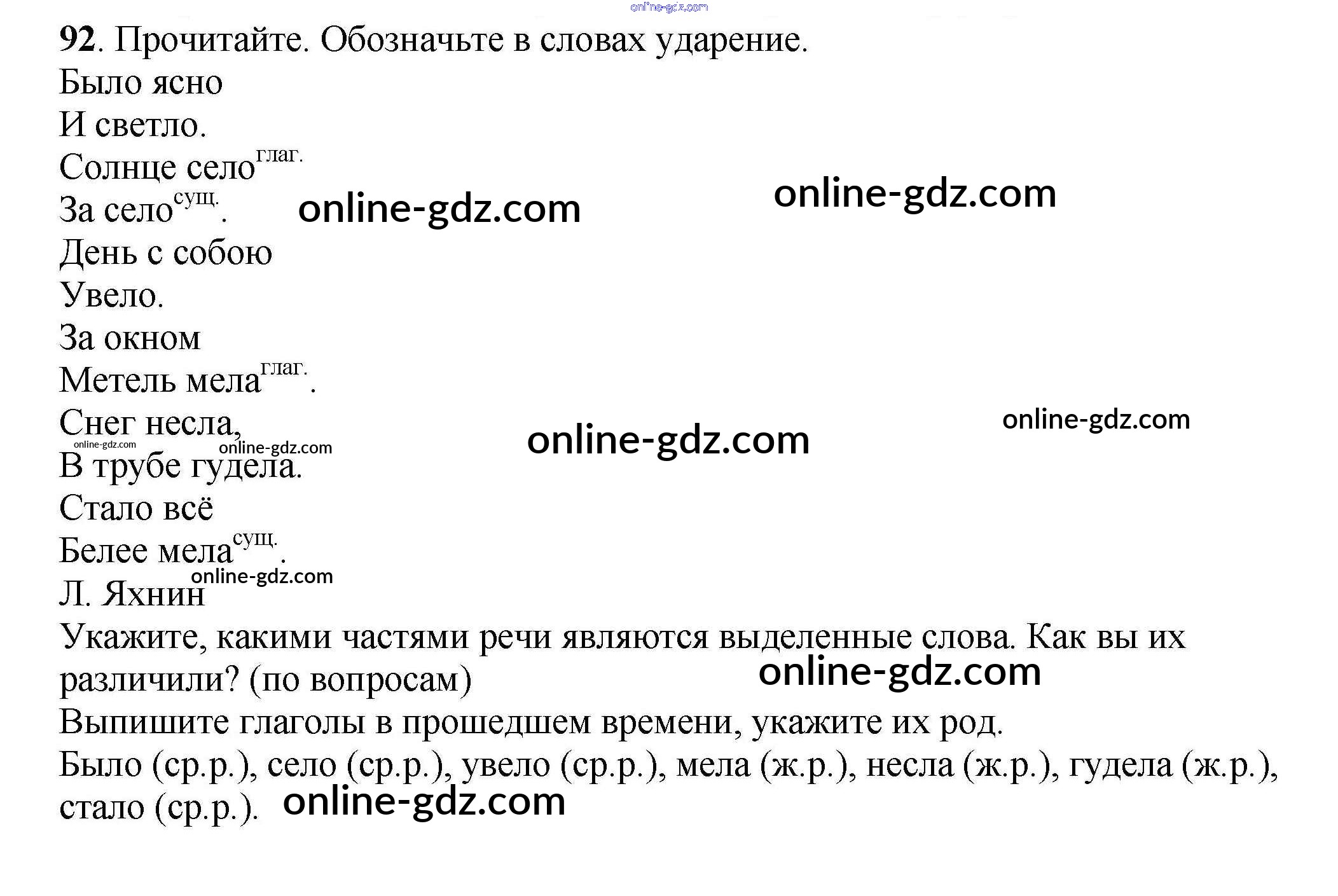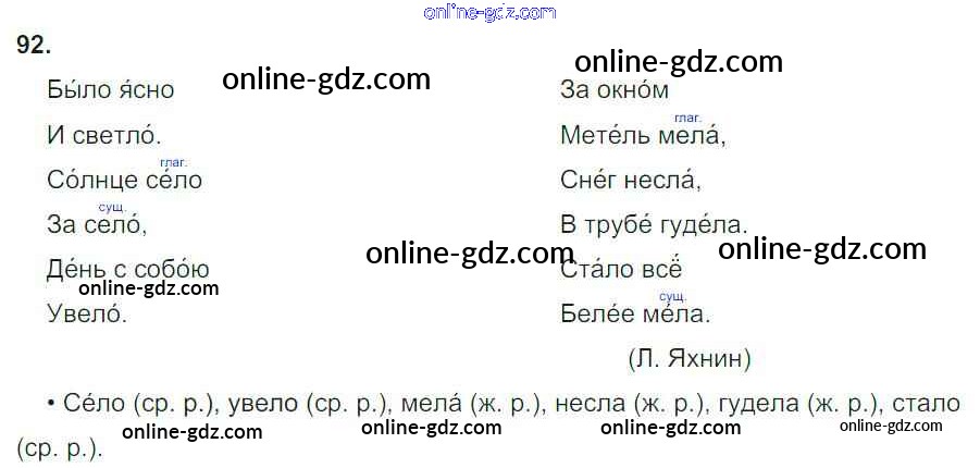 Готовые домашние задания по Русскому языку за 4 класс Рабочая тетрадь Канакина Школа России 2013 - Часть 2. Задания 92