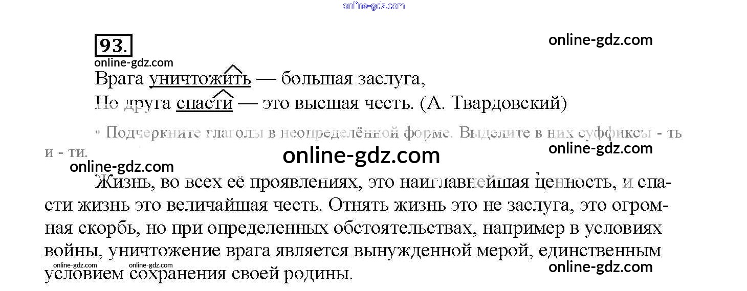Готовые домашние задания по Русскому языку за 4 класс Рабочая тетрадь Канакина Школа России 2013 - Часть 2. Задания 93