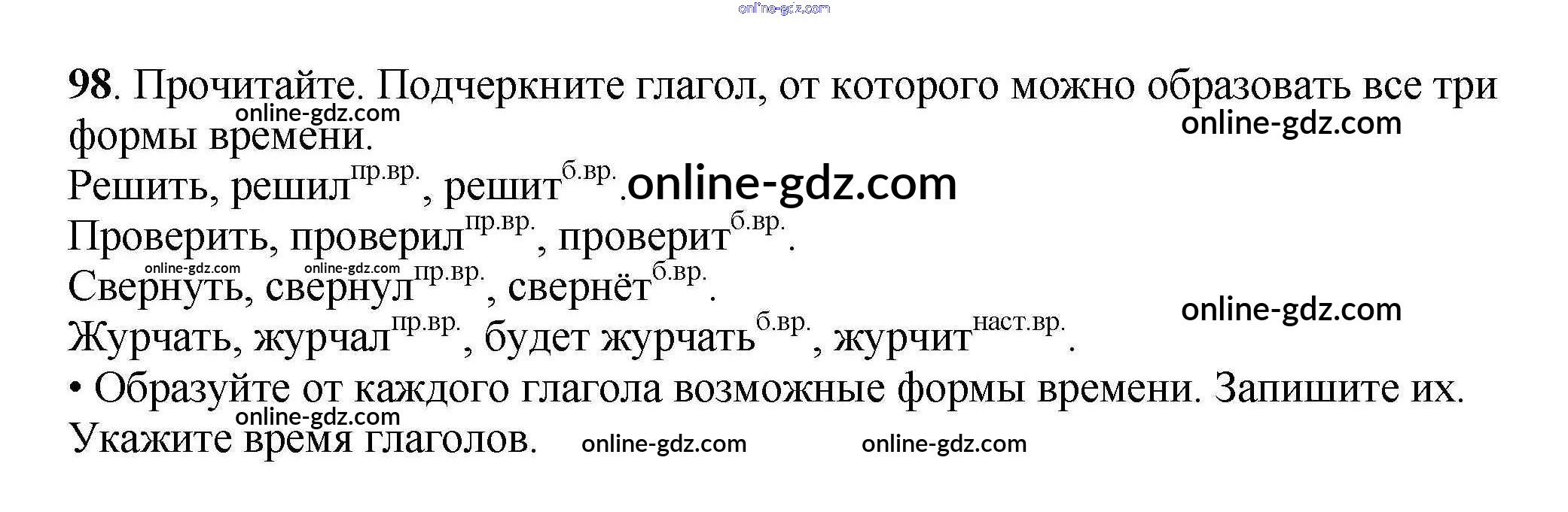 Готовые домашние задания по Русскому языку за 4 класс Рабочая тетрадь Канакина Школа России 2013 - Часть 2. Задания 98