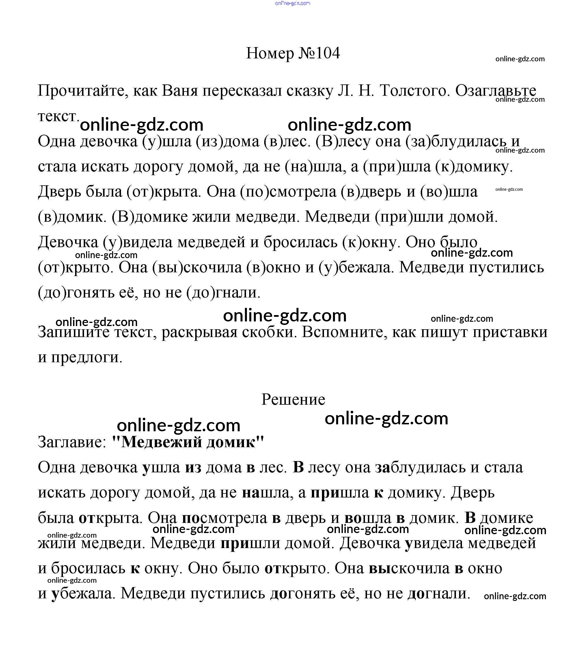 Готовые домашние задания по Русскому языку за 4 класс Рабочая тетрадь Климанова Перспектива 2016 - Часть 1. Задания 104