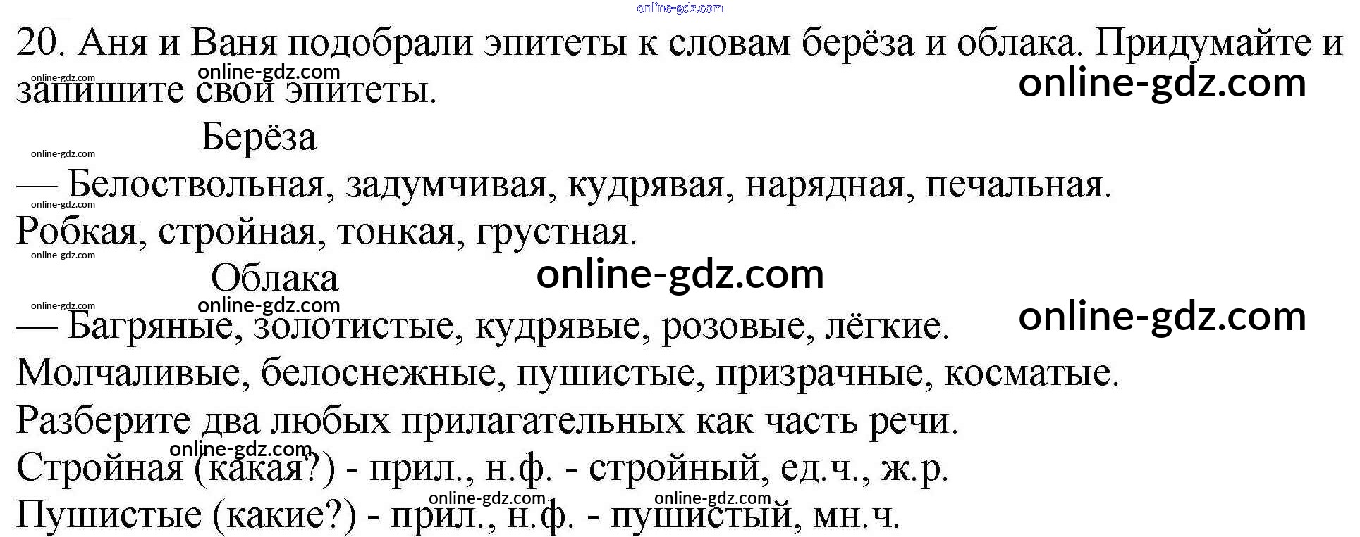 Готовые домашние задания по Русскому языку за 4 класс Рабочая тетрадь Климанова Перспектива 2016 - Часть 1. Задания 20