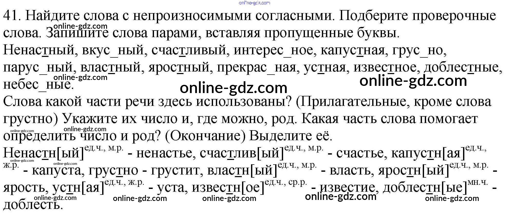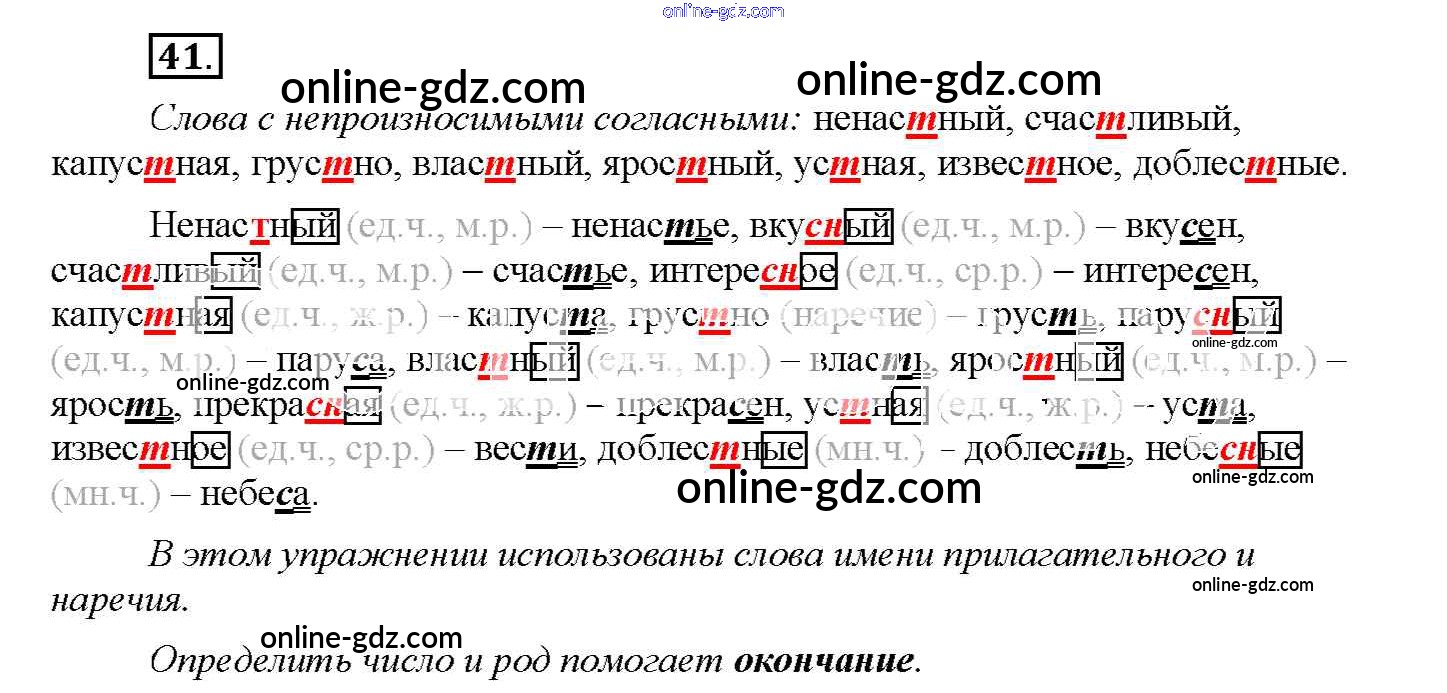 Готовые домашние задания по Русскому языку за 4 класс Рабочая тетрадь Климанова Перспектива 2016 - Часть 1. Задания 41