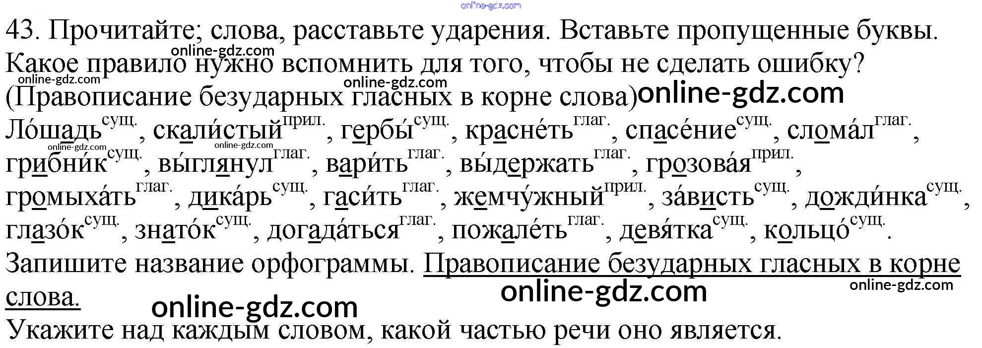 Готовые домашние задания по Русскому языку за 4 класс Рабочая тетрадь Климанова Перспектива 2016 - Часть 1. Задания 43