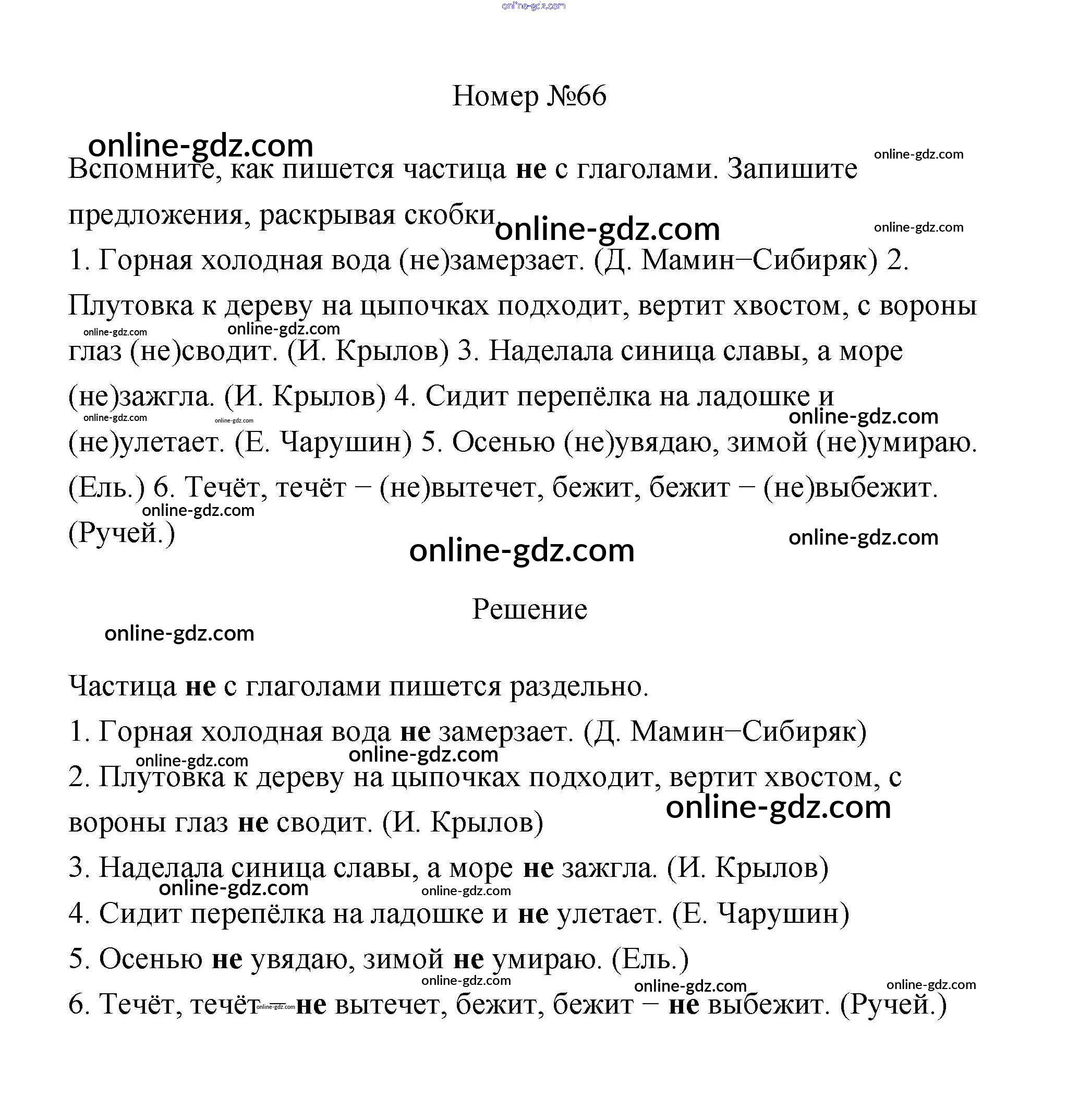 Готовые домашние задания по Русскому языку за 4 класс Рабочая тетрадь Климанова Перспектива 2016 - Часть 1. Задания 66