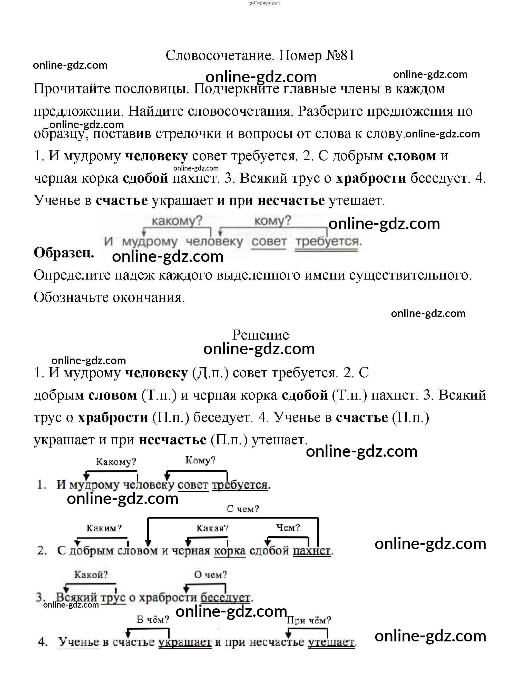Готовые домашние задания по Русскому языку за 4 класс Рабочая тетрадь Климанова Перспектива 2016 - Часть 1. Задания 81