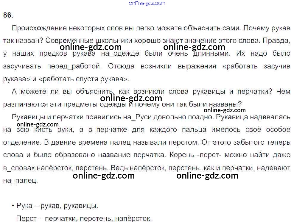 Готовые домашние задания по Русскому языку за 4 класс Рабочая тетрадь Климанова Перспектива 2016 - Часть 1. Задания 86