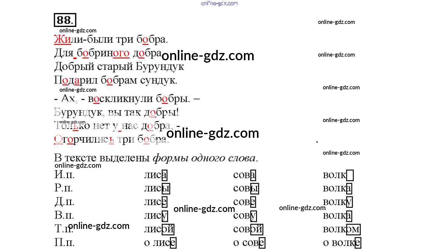 Готовые домашние задания по Русскому языку за 4 класс Рабочая тетрадь Климанова Перспектива 2016 - Часть 1. Задания 88