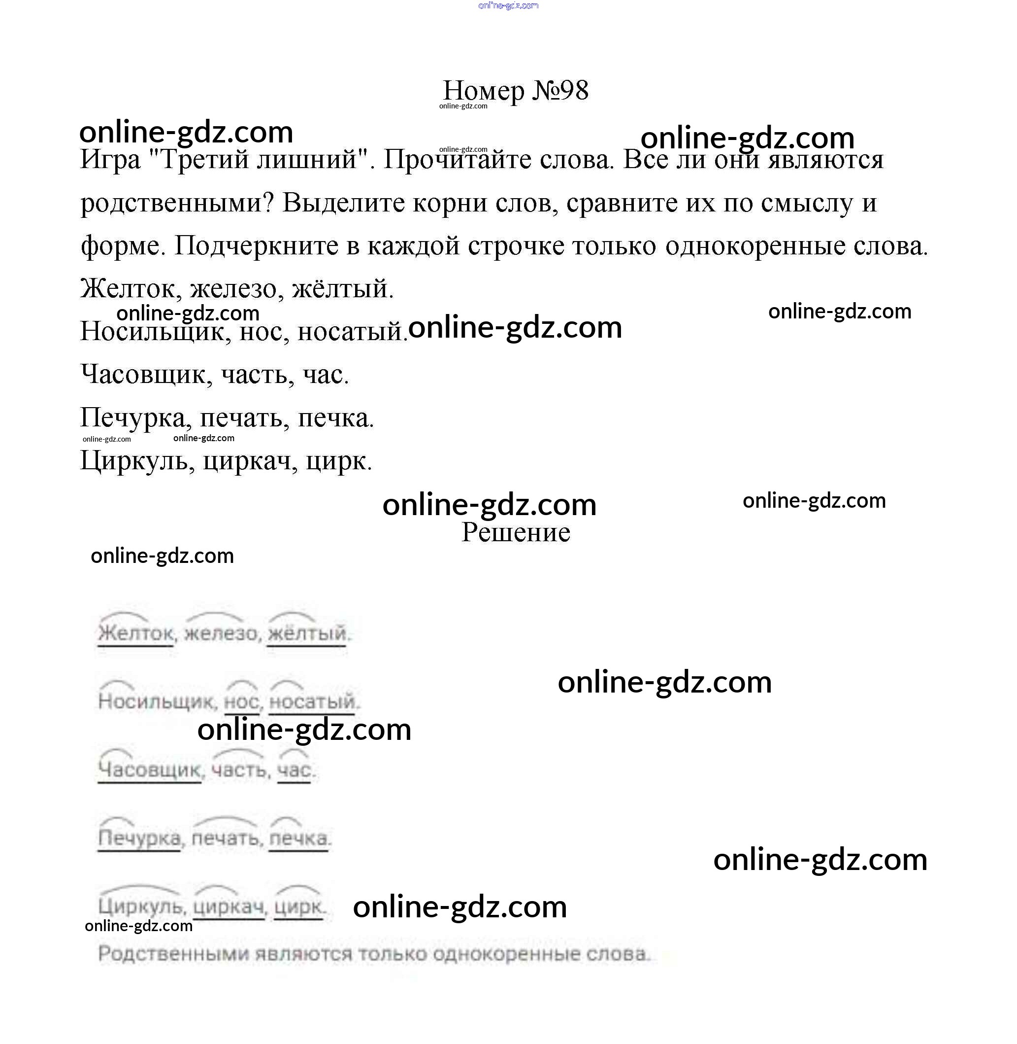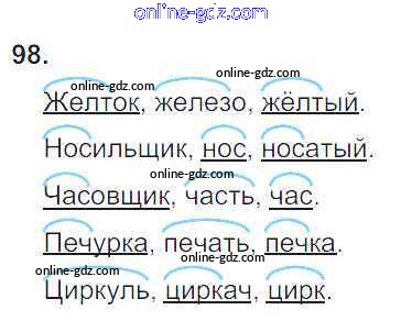 Готовые домашние задания по Русскому языку за 4 класс Рабочая тетрадь Климанова Перспектива 2016 - Часть 1. Задания 98
