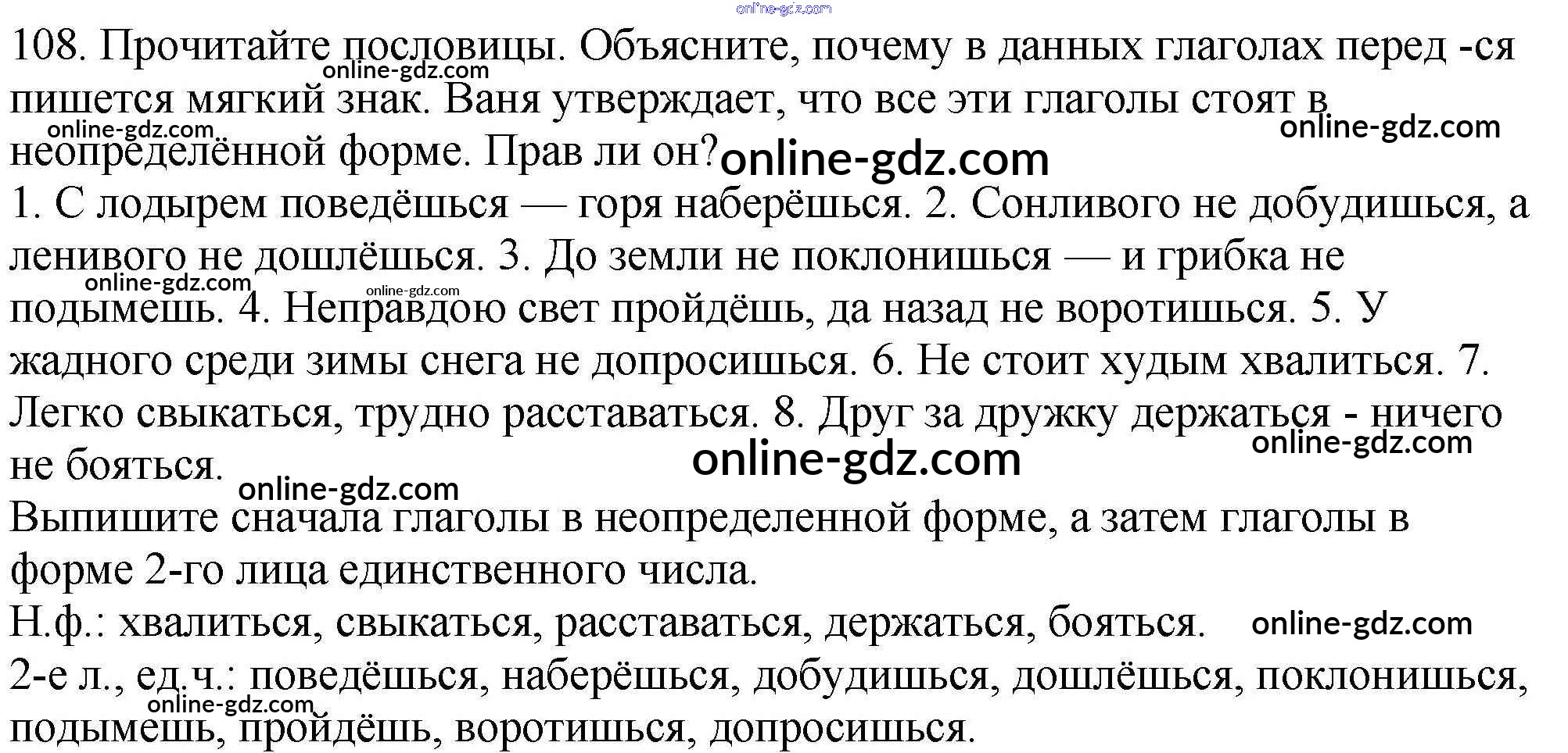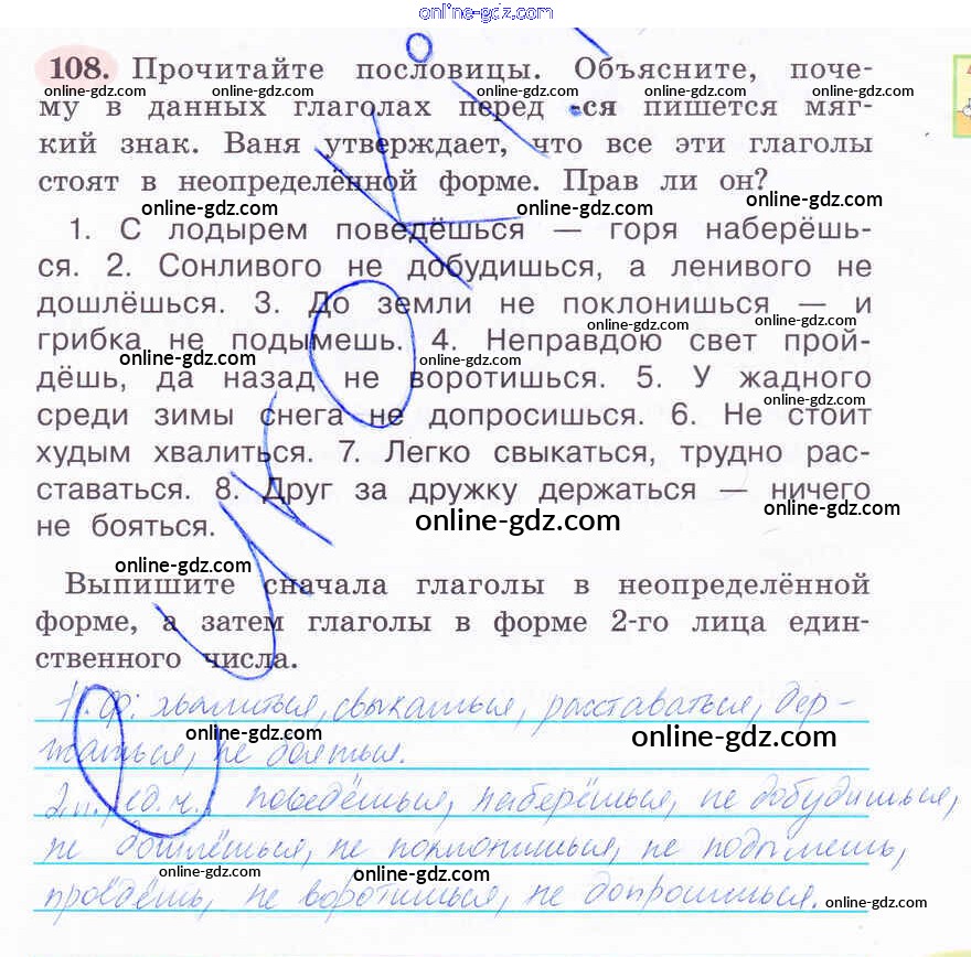 Готовые домашние задания по Русскому языку за 4 класс Рабочая тетрадь Климанова Перспектива 2016 - Часть 2. Задания 108