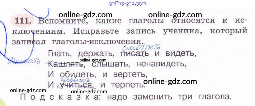 Готовые домашние задания по Русскому языку за 4 класс Рабочая тетрадь Климанова Перспектива 2016 - Часть 2. Задания 111