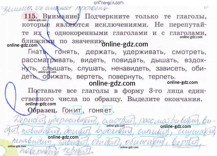 Готовые домашние задания по Русскому языку за 4 класс Рабочая тетрадь Климанова Перспектива 2016 - Часть 2. Задания 115
