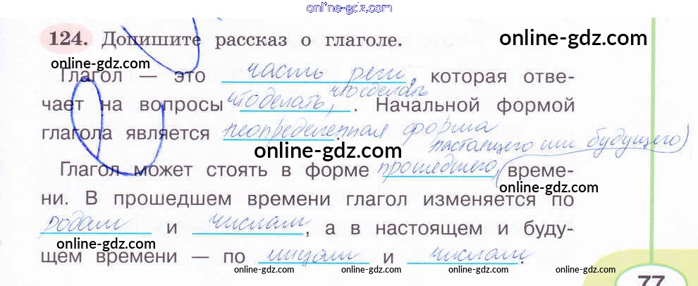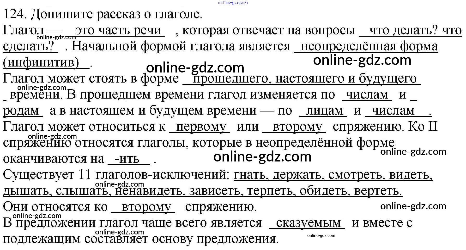 Готовые домашние задания по Русскому языку за 4 класс Рабочая тетрадь Климанова Перспектива 2016 - Часть 2. Задания 124