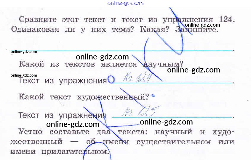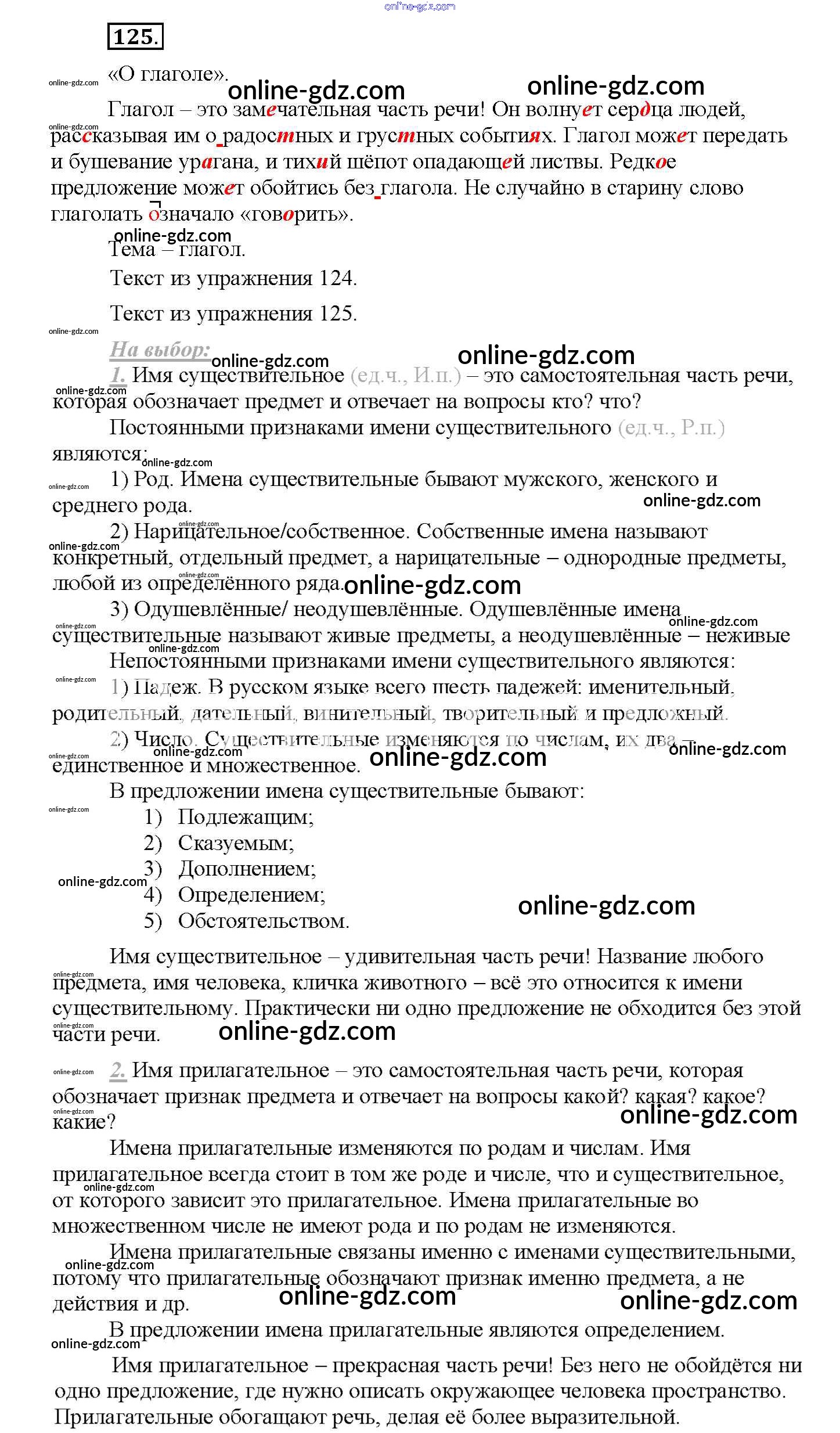 Готовые домашние задания по Русскому языку за 4 класс Рабочая тетрадь Климанова Перспектива 2016 - Часть 2. Задания 125