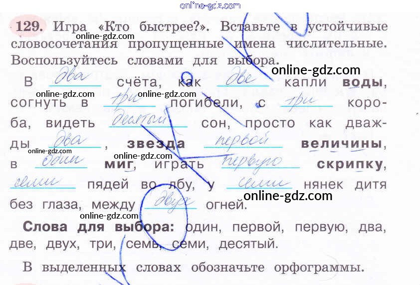 Готовые домашние задания по Русскому языку за 4 класс Рабочая тетрадь Климанова Перспектива 2016 - Часть 2. Задания 129