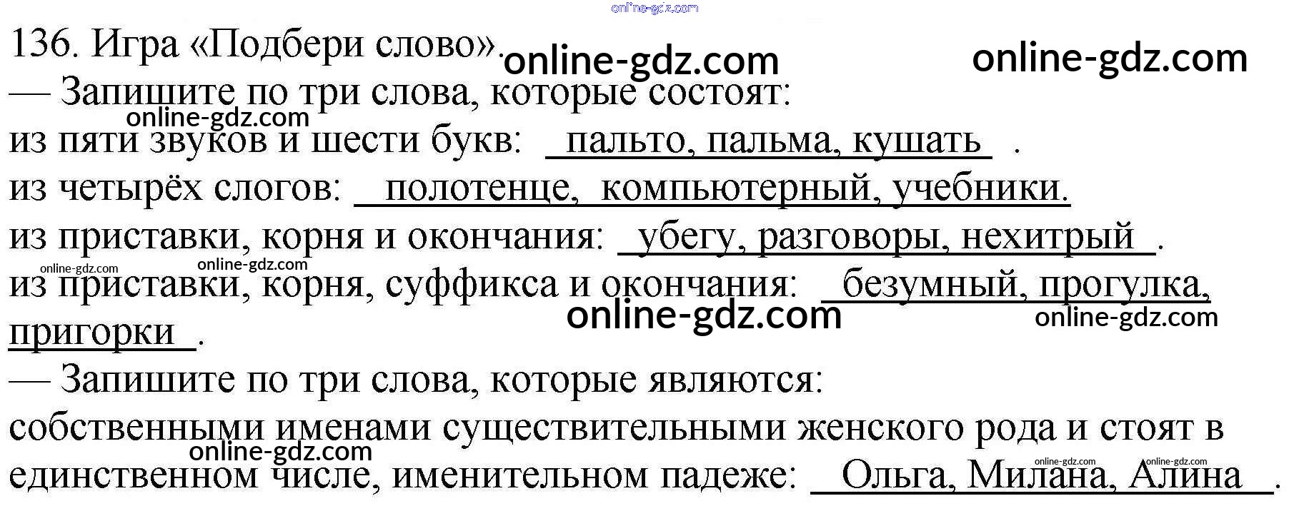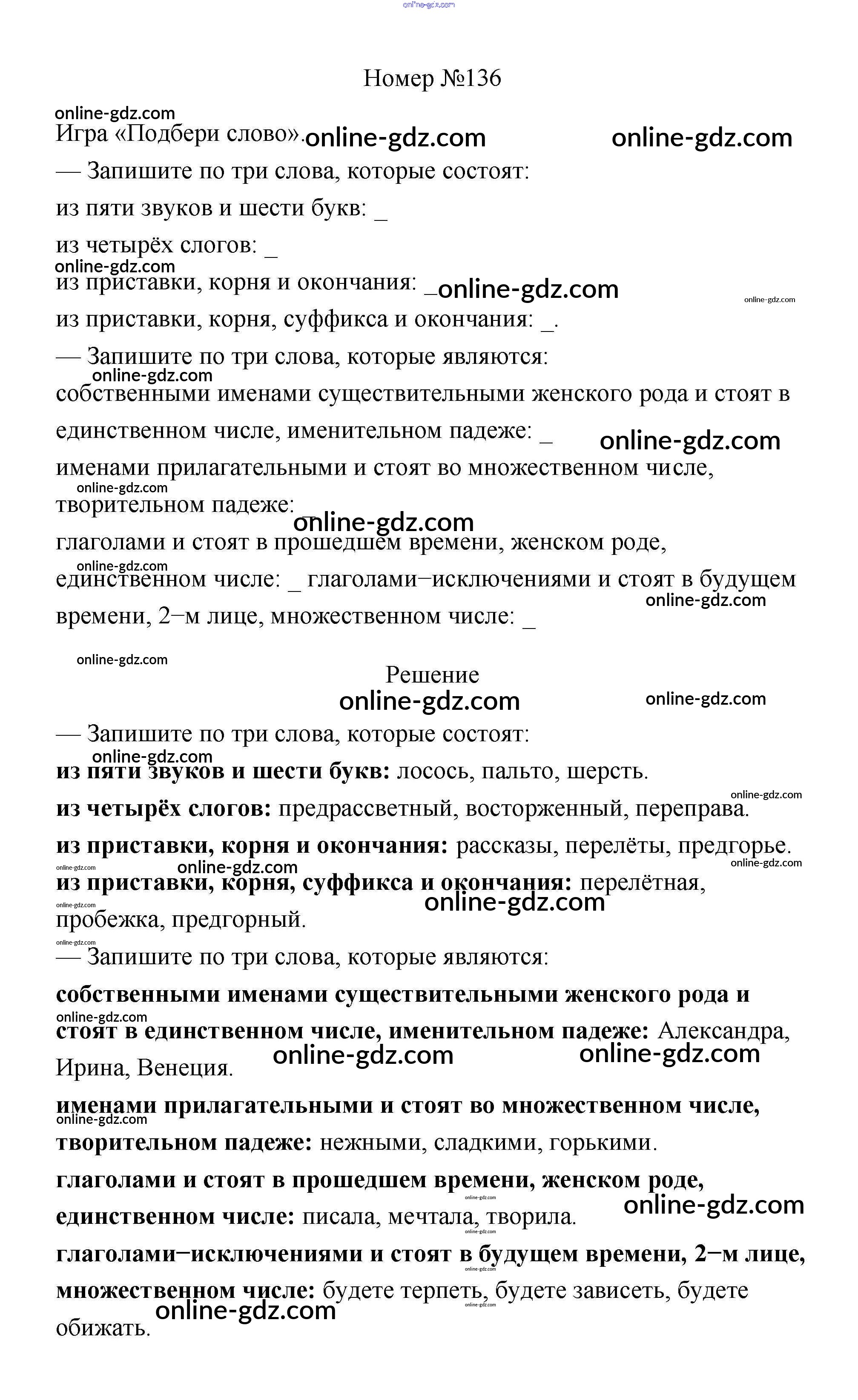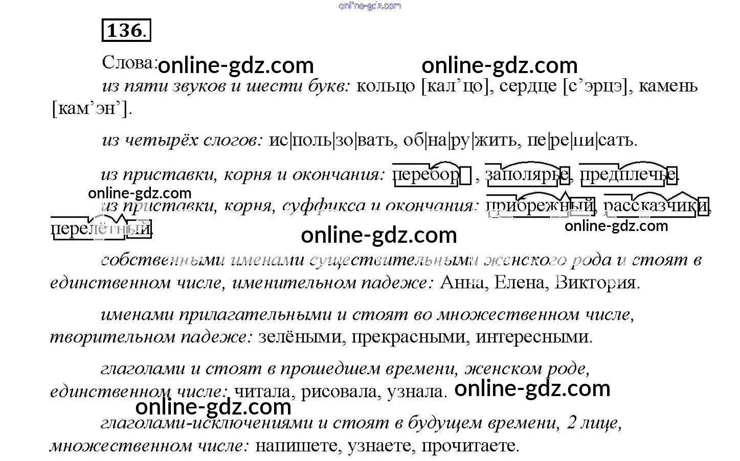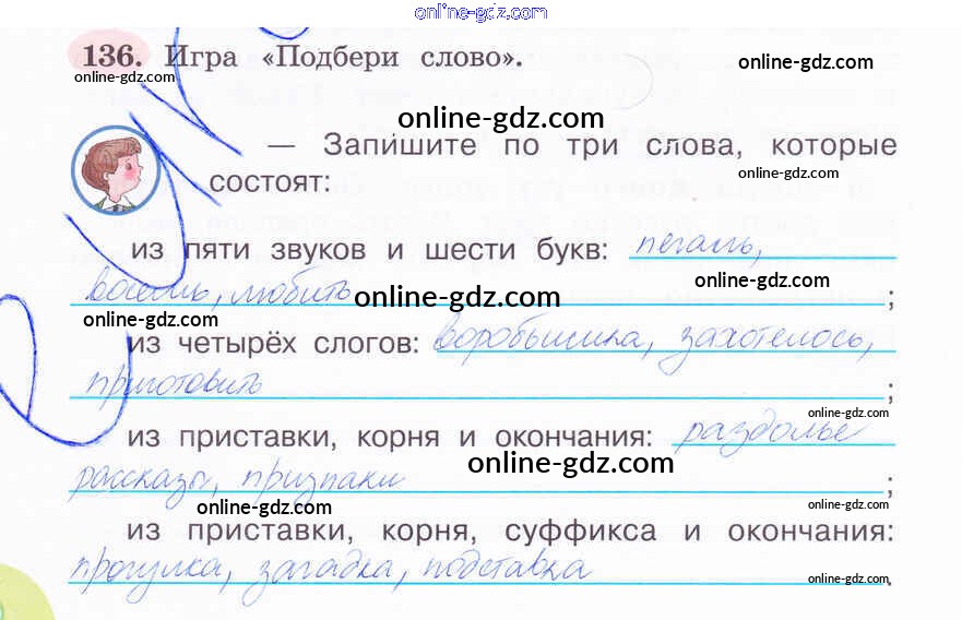 Готовые домашние задания по Русскому языку за 4 класс Рабочая тетрадь Климанова Перспектива 2016 - Часть 2. Задания 136