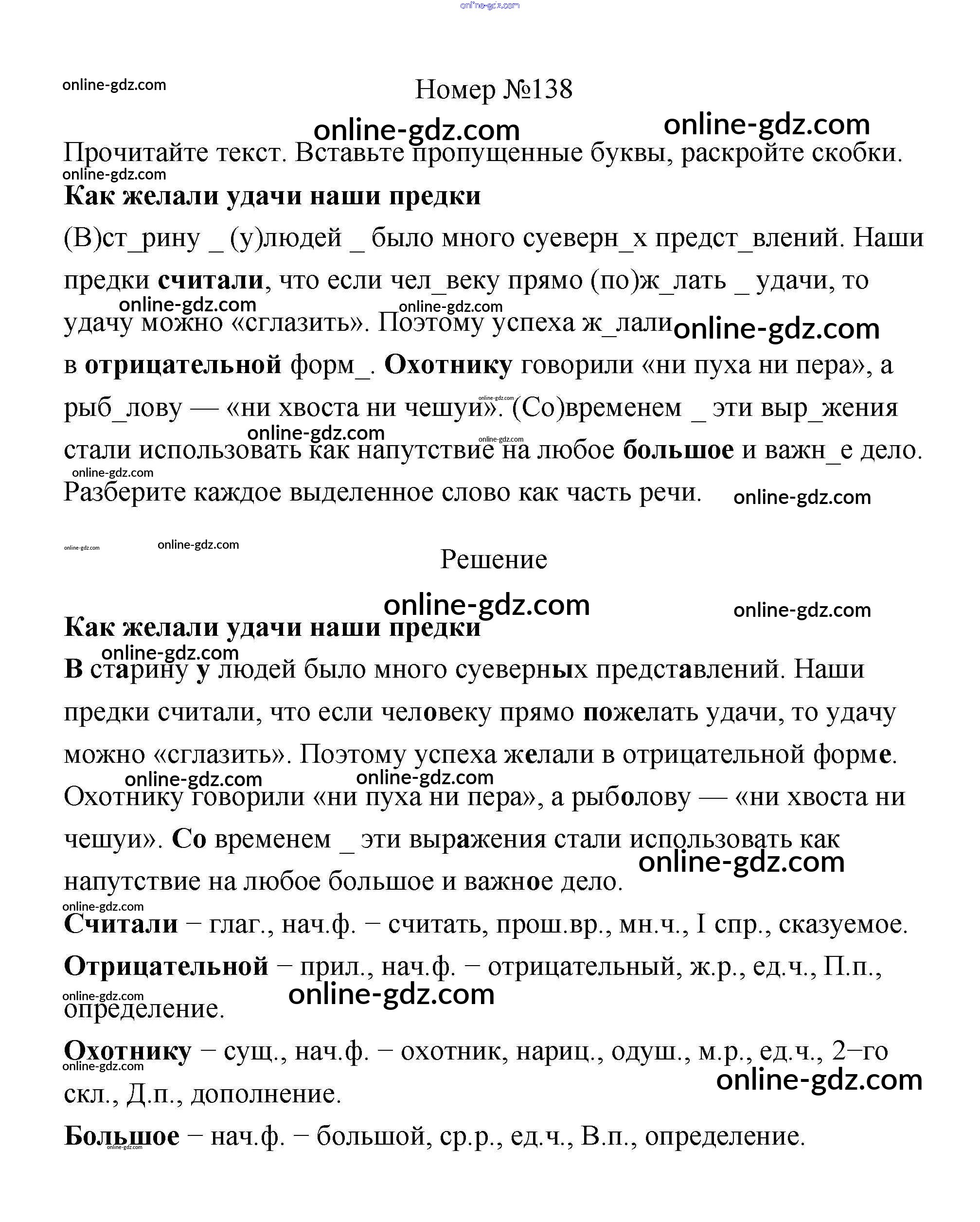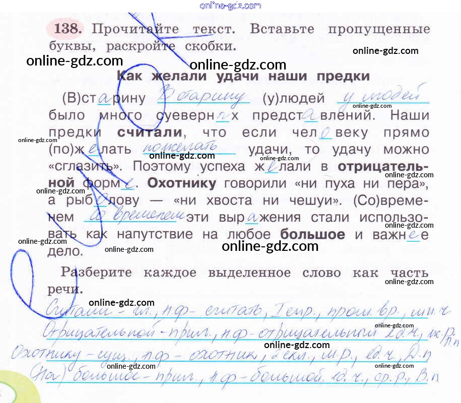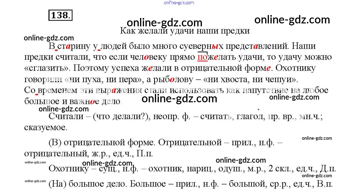 Готовые домашние задания по Русскому языку за 4 класс Рабочая тетрадь Климанова Перспектива 2016 - Часть 2. Задания 138