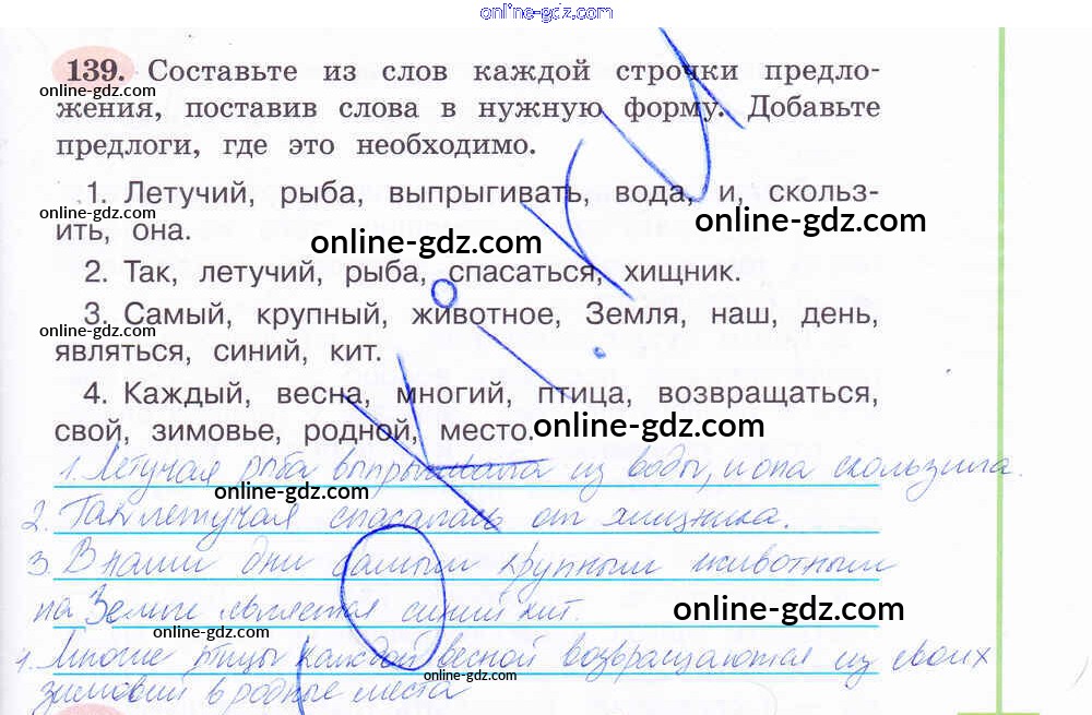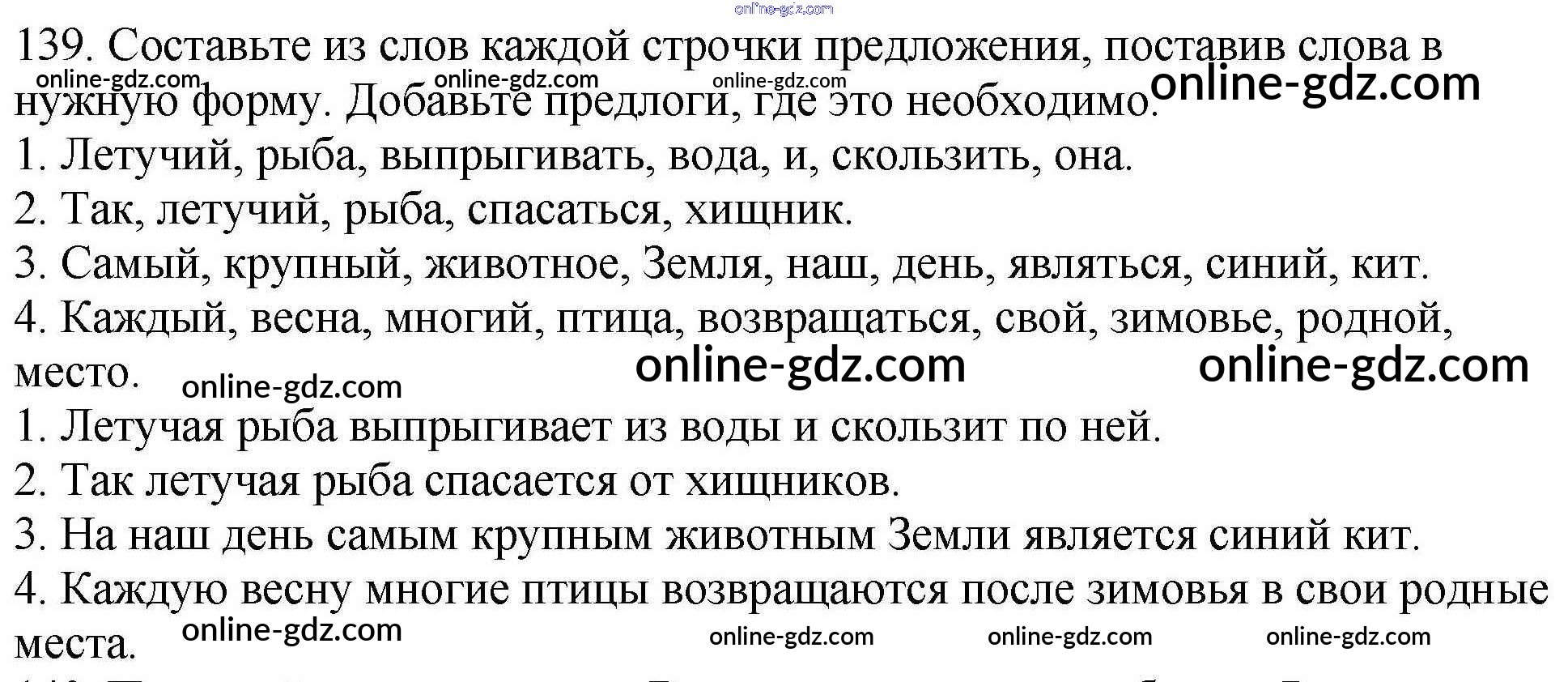 Готовые домашние задания по Русскому языку за 4 класс Рабочая тетрадь Климанова Перспектива 2016 - Часть 2. Задания 139
