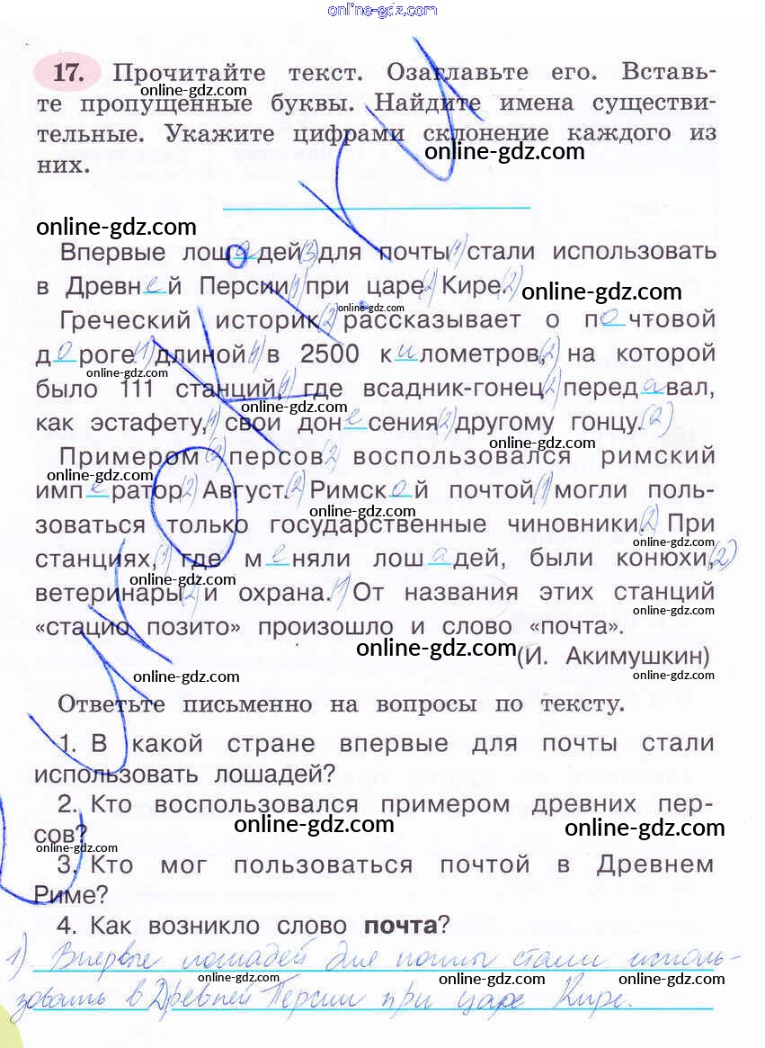 Готовые домашние задания по Русскому языку за 4 класс Рабочая тетрадь Климанова Перспектива 2016 - Часть 2. Задания 17