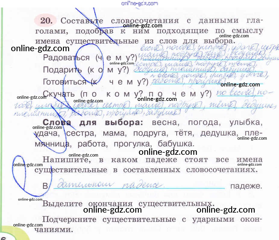 Готовые домашние задания по Русскому языку за 4 класс Рабочая тетрадь Климанова Перспектива 2016 - Часть 2. Задания 20