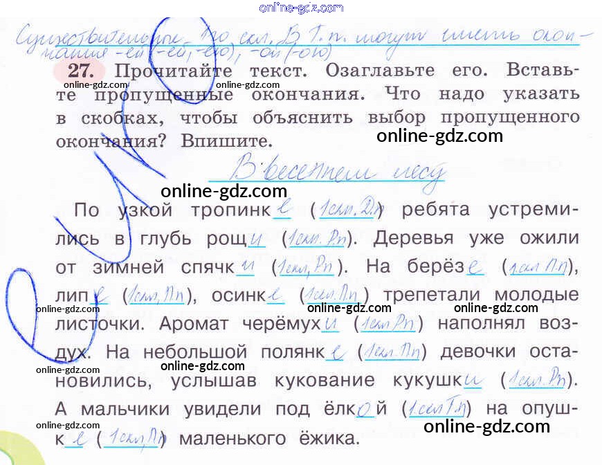 Готовые домашние задания по Русскому языку за 4 класс Рабочая тетрадь Климанова Перспектива 2016 - Часть 2. Задания 27