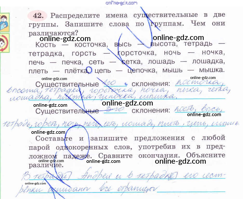 Готовые домашние задания по Русскому языку за 4 класс Рабочая тетрадь Климанова Перспектива 2016 - Часть 2. Задания 42