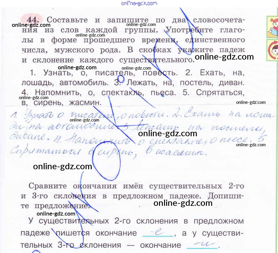 Готовые домашние задания по Русскому языку за 4 класс Рабочая тетрадь Климанова Перспектива 2016 - Часть 2. Задания 44