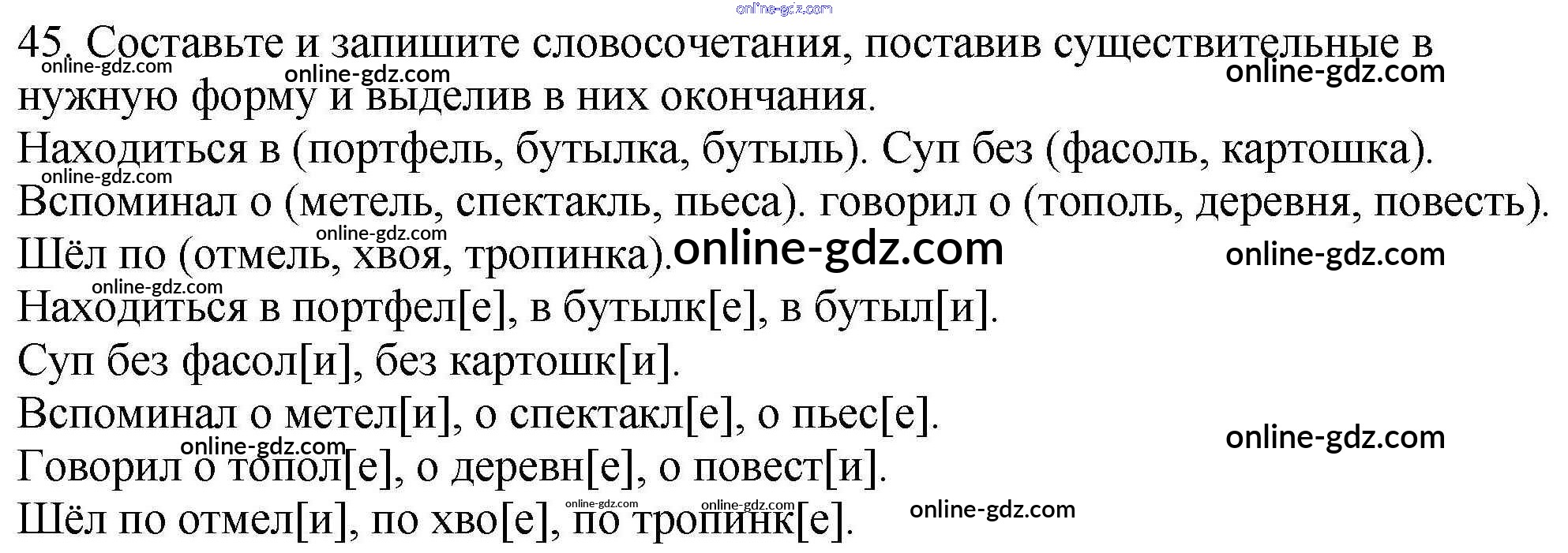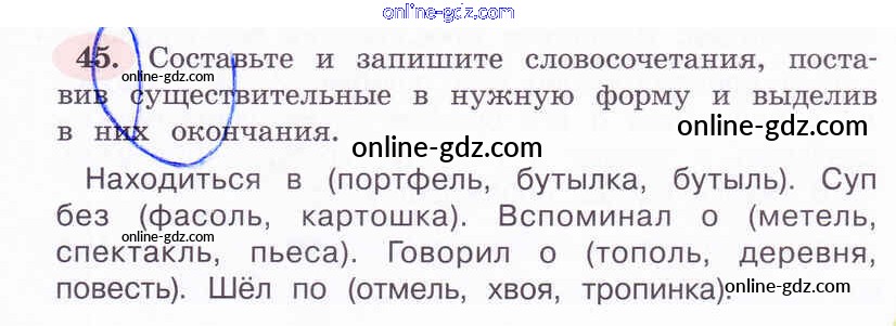 Готовые домашние задания по Русскому языку за 4 класс Рабочая тетрадь Климанова Перспектива 2016 - Часть 2. Задания 45