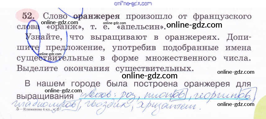 Готовые домашние задания по Русскому языку за 4 класс Рабочая тетрадь Климанова Перспектива 2016 - Часть 2. Задания 52