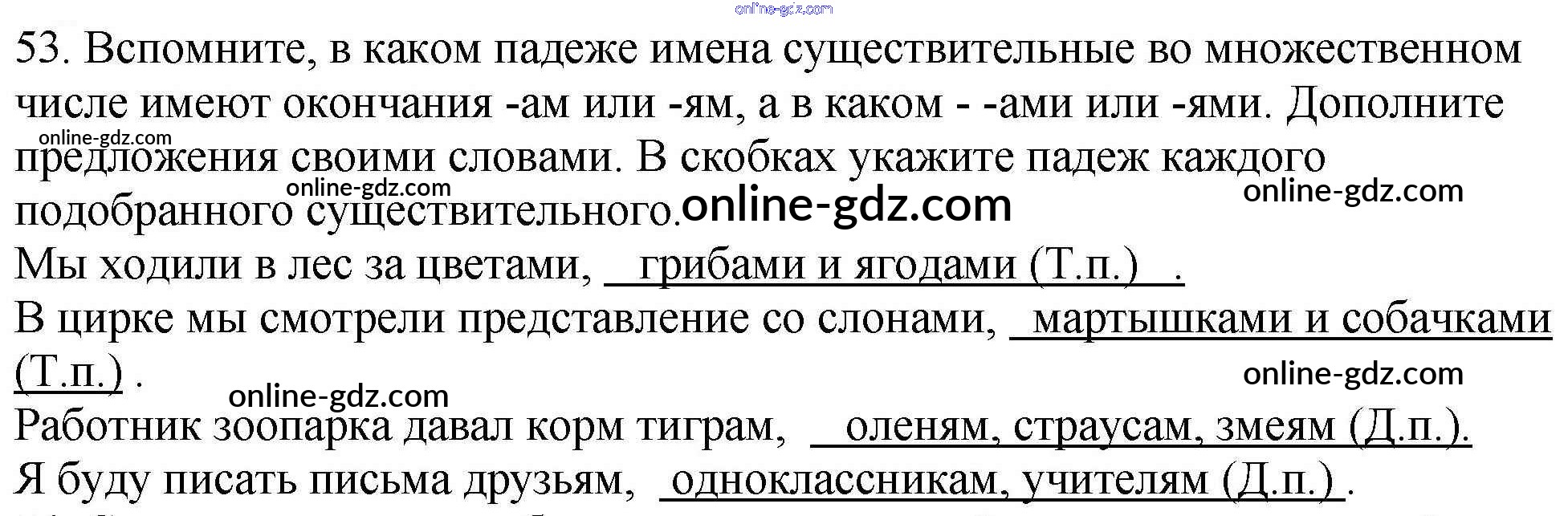 Готовые домашние задания по Русскому языку за 4 класс Рабочая тетрадь Климанова Перспектива 2016 - Часть 2. Задания 53