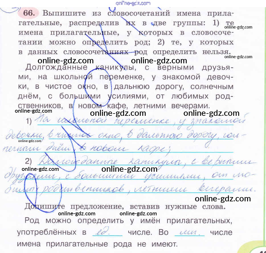 Готовые домашние задания по Русскому языку за 4 класс Рабочая тетрадь Климанова Перспектива 2016 - Часть 2. Задания 66
