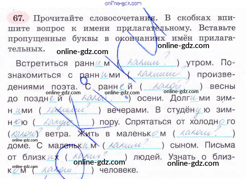 Готовые домашние задания по Русскому языку за 4 класс Рабочая тетрадь Климанова Перспектива 2016 - Часть 2. Задания 67