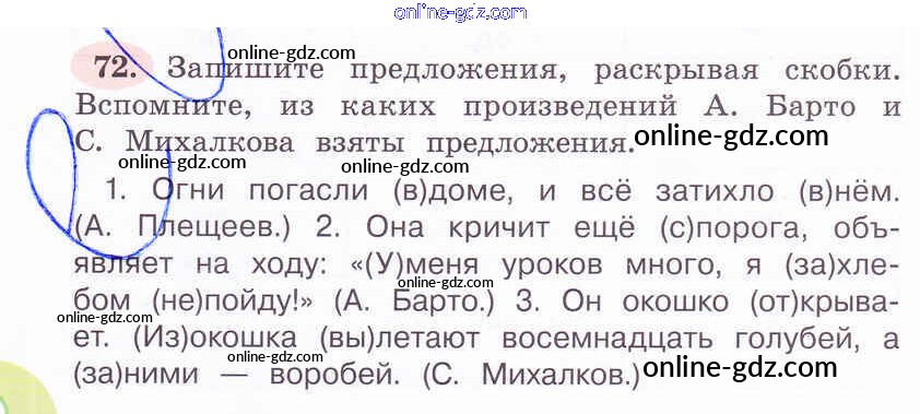 Готовые домашние задания по Русскому языку за 4 класс Рабочая тетрадь Климанова Перспектива 2016 - Часть 2. Задания 72