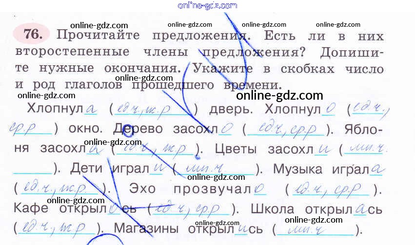 Готовые домашние задания по Русскому языку за 4 класс Рабочая тетрадь Климанова Перспектива 2016 - Часть 2. Задания 76