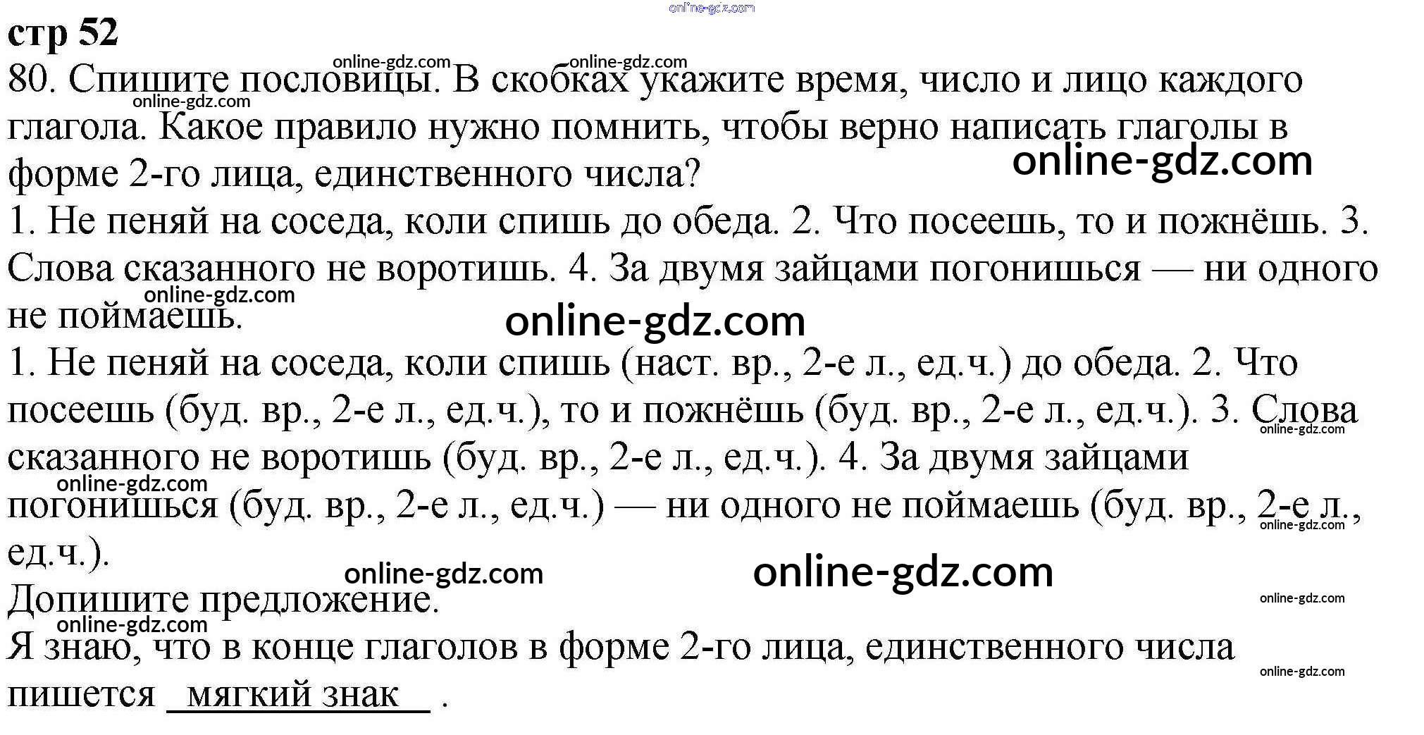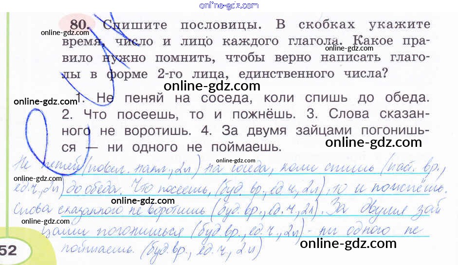 Готовые домашние задания по Русскому языку за 4 класс Рабочая тетрадь Климанова Перспектива 2016 - Часть 2. Задания 80