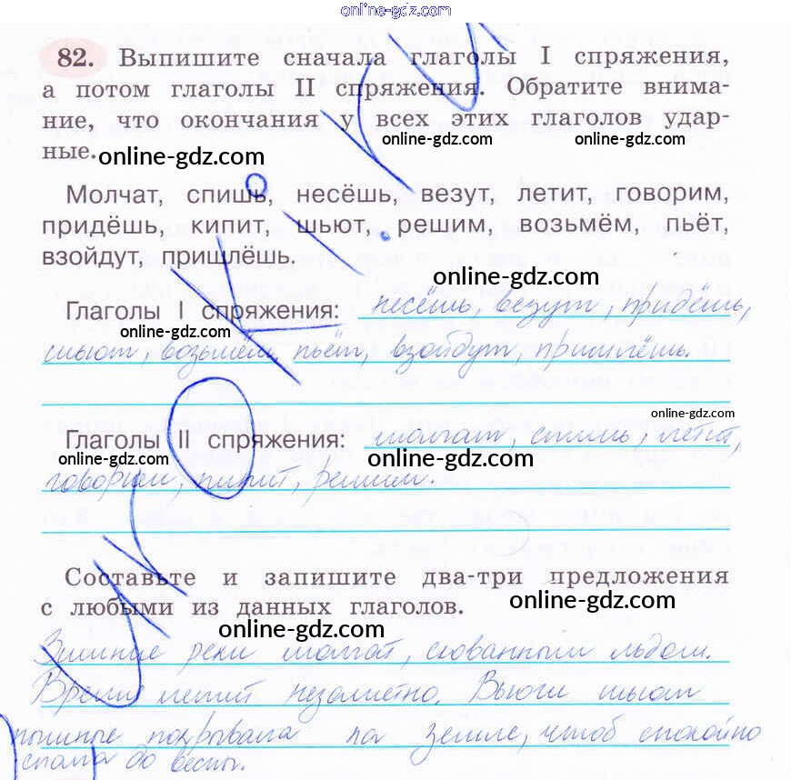 Готовые домашние задания по Русскому языку за 4 класс Рабочая тетрадь Климанова Перспектива 2016 - Часть 2. Задания 82