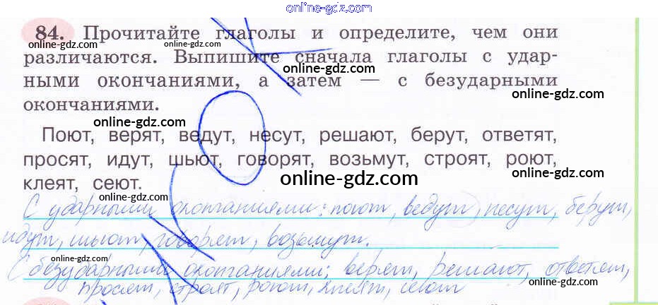 Готовые домашние задания по Русскому языку за 4 класс Рабочая тетрадь Климанова Перспектива 2016 - Часть 2. Задания 84
