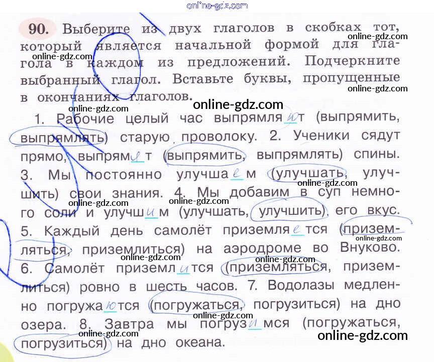 Готовые домашние задания по Русскому языку за 4 класс Рабочая тетрадь Климанова Перспектива 2016 - Часть 2. Задания 90