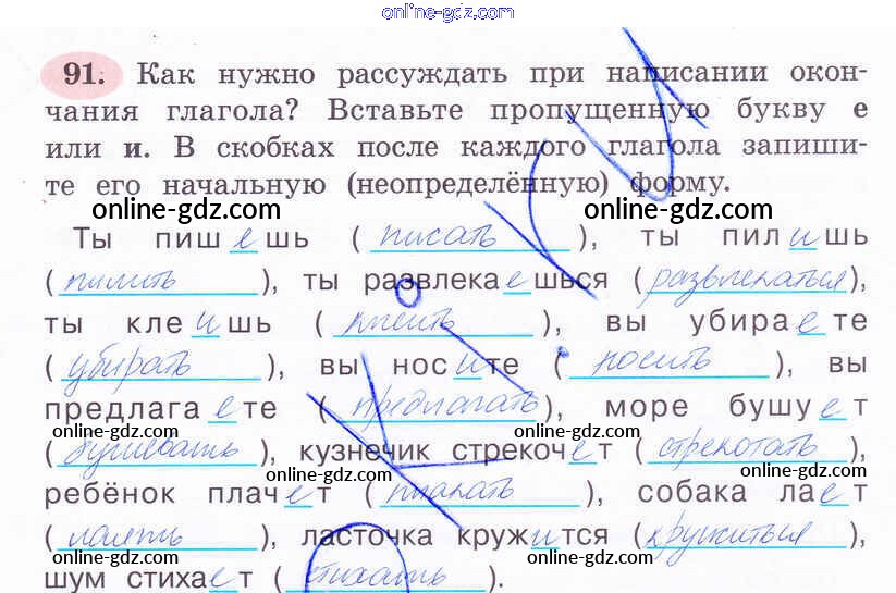 Готовые домашние задания по Русскому языку за 4 класс Рабочая тетрадь Климанова Перспектива 2016 - Часть 2. Задания 91