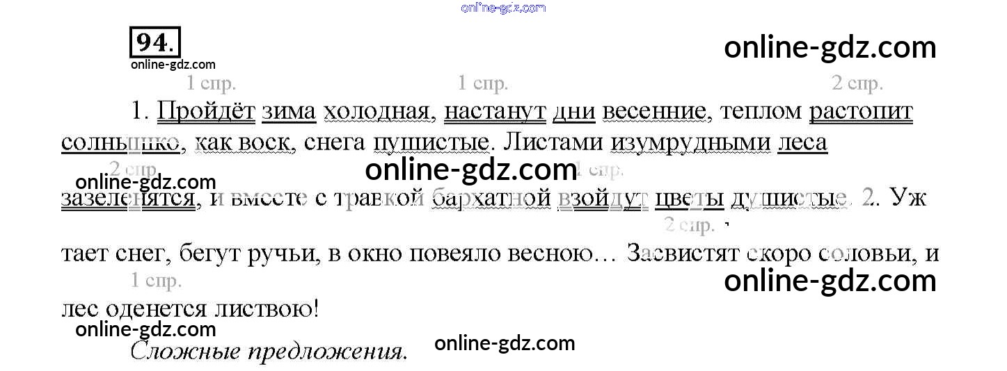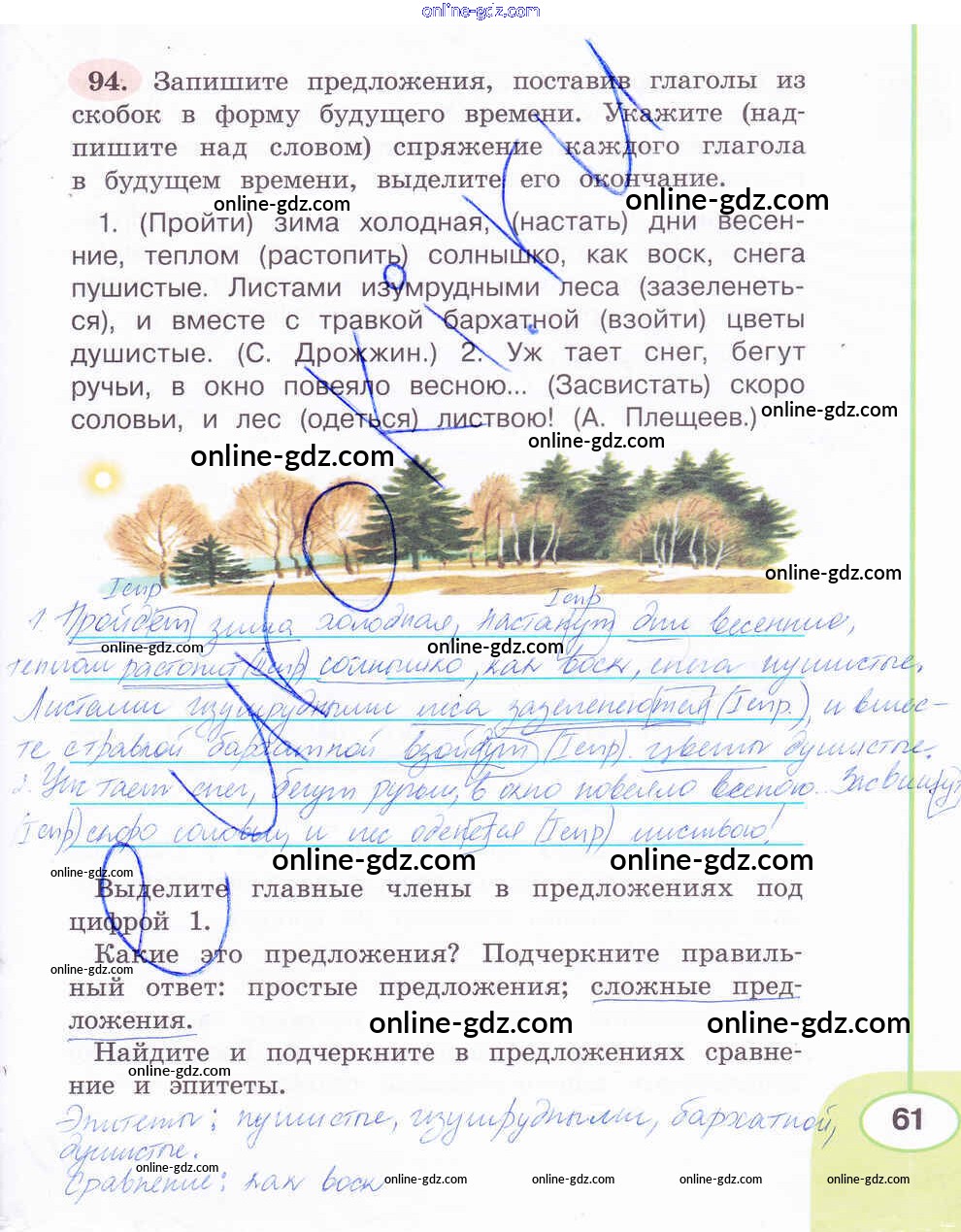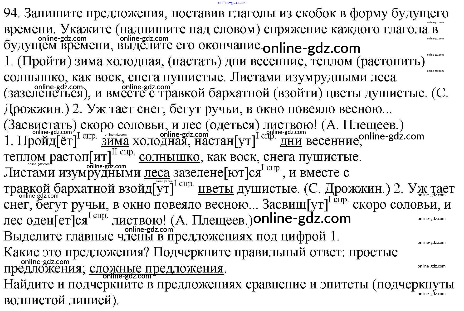 Готовые домашние задания по Русскому языку за 4 класс Рабочая тетрадь Климанова Перспектива 2016 - Часть 2. Задания 94