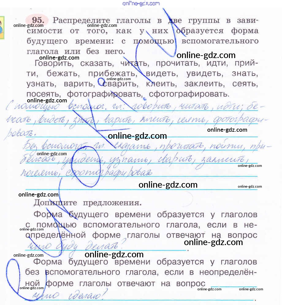 Готовые домашние задания по Русскому языку за 4 класс Рабочая тетрадь Климанова Перспектива 2016 - Часть 2. Задания 95