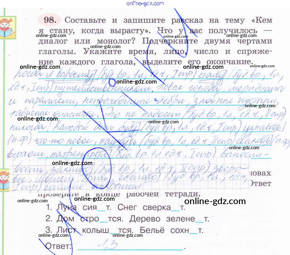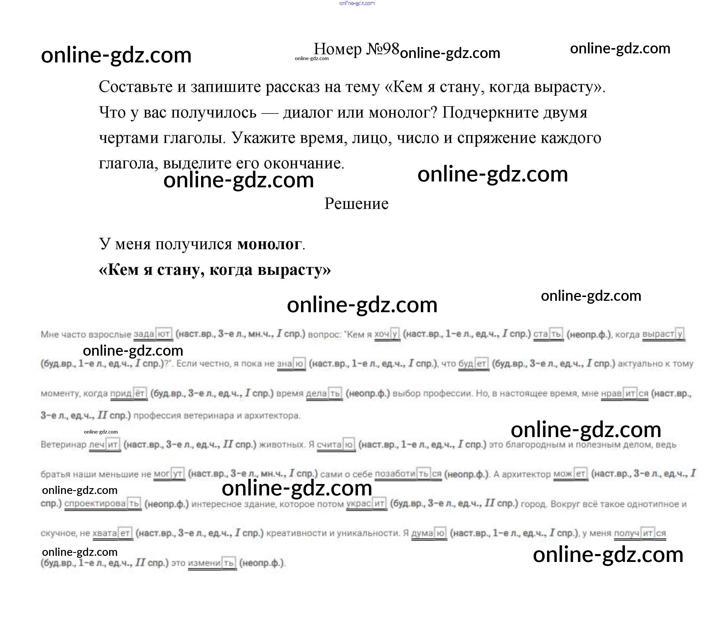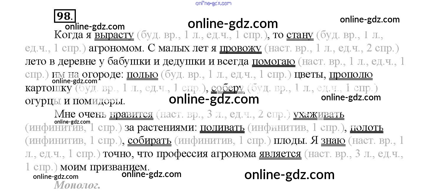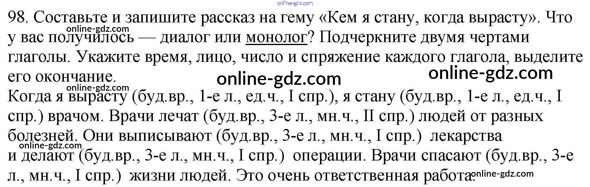 Готовые домашние задания по Русскому языку за 4 класс Рабочая тетрадь Климанова Перспектива 2016 - Часть 2. Задания 98