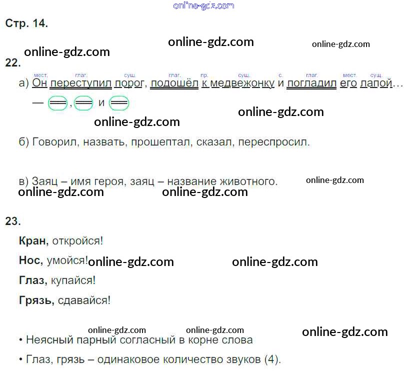 Готовые домашние задания по Русскому языку за 4 класс Рабочая тетрадь Нечаева, Воскресенская 2014 - Часть 1. Страницы тетради 14