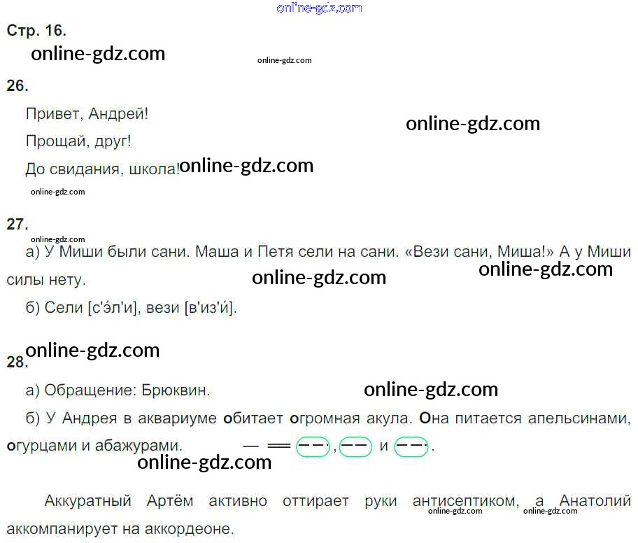 Готовые домашние задания по Русскому языку за 4 класс Рабочая тетрадь Нечаева, Воскресенская 2014 - Часть 1. Страницы тетради 16