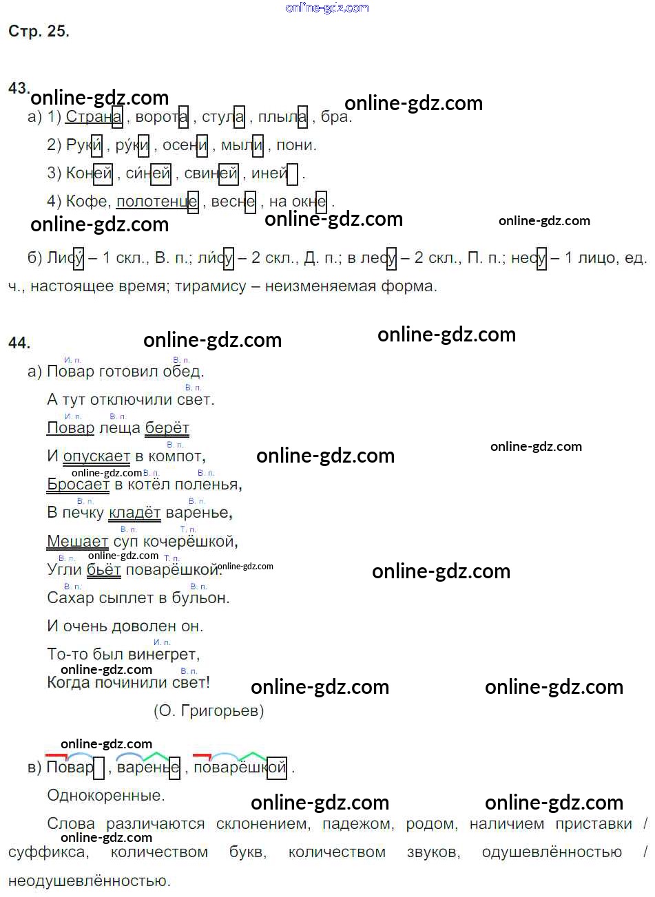 Готовые домашние задания по Русскому языку за 4 класс Рабочая тетрадь Нечаева, Воскресенская 2014 - Часть 1. Страницы тетради 25