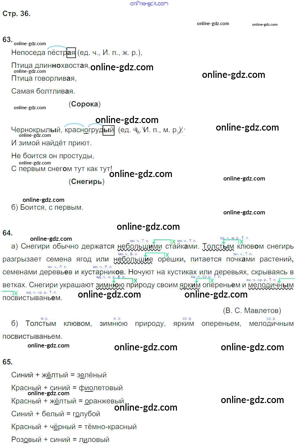 Готовые домашние задания по Русскому языку за 4 класс Рабочая тетрадь Нечаева, Воскресенская 2014 - Часть 1. Страницы тетради 36